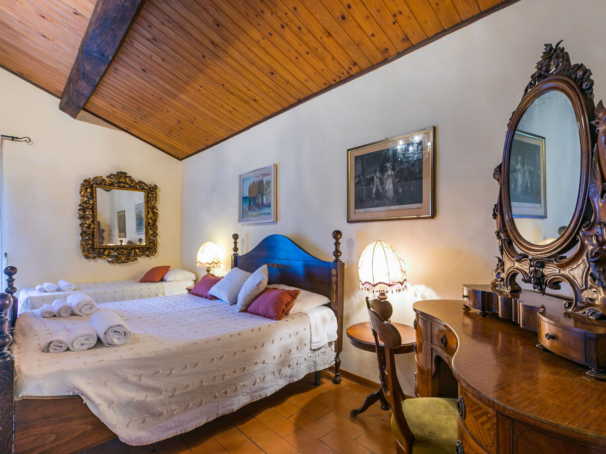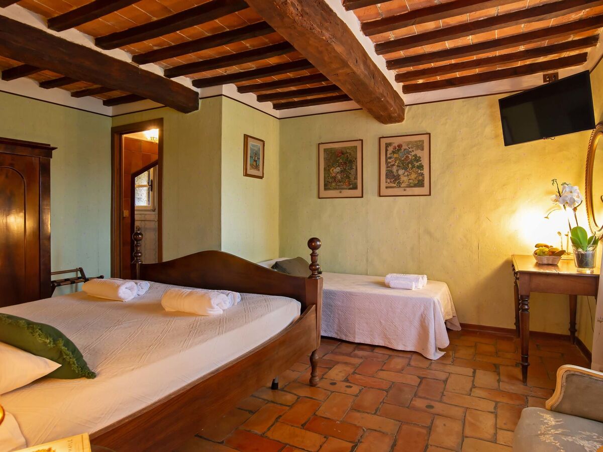 Grand 1 chambre avec 2 lits (90 cm), 1 lit double, bain/bidet/WC et TV (écran plat), air-conditionné.