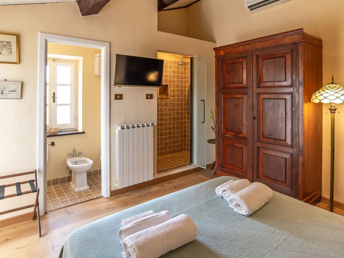 1 chambre double avec bain/bidet/WC, douche/bidet/WC et TV (écran plat), air-conditionné.