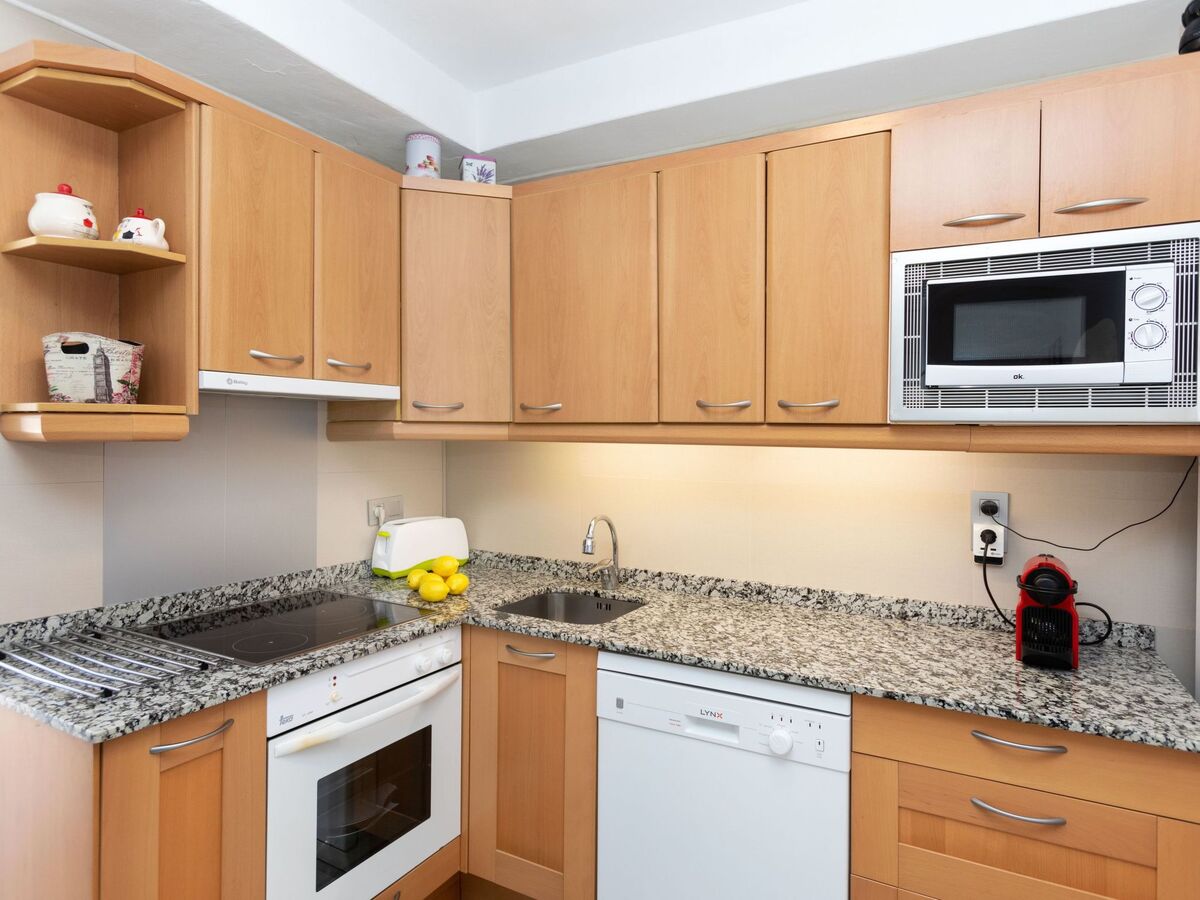 Cuisine ouverte (four, lave-vaisselle, 4 plaques vitrocéramiques, grille-pain, bouilloire électrique, micro-ondes, cafetière électrique).
