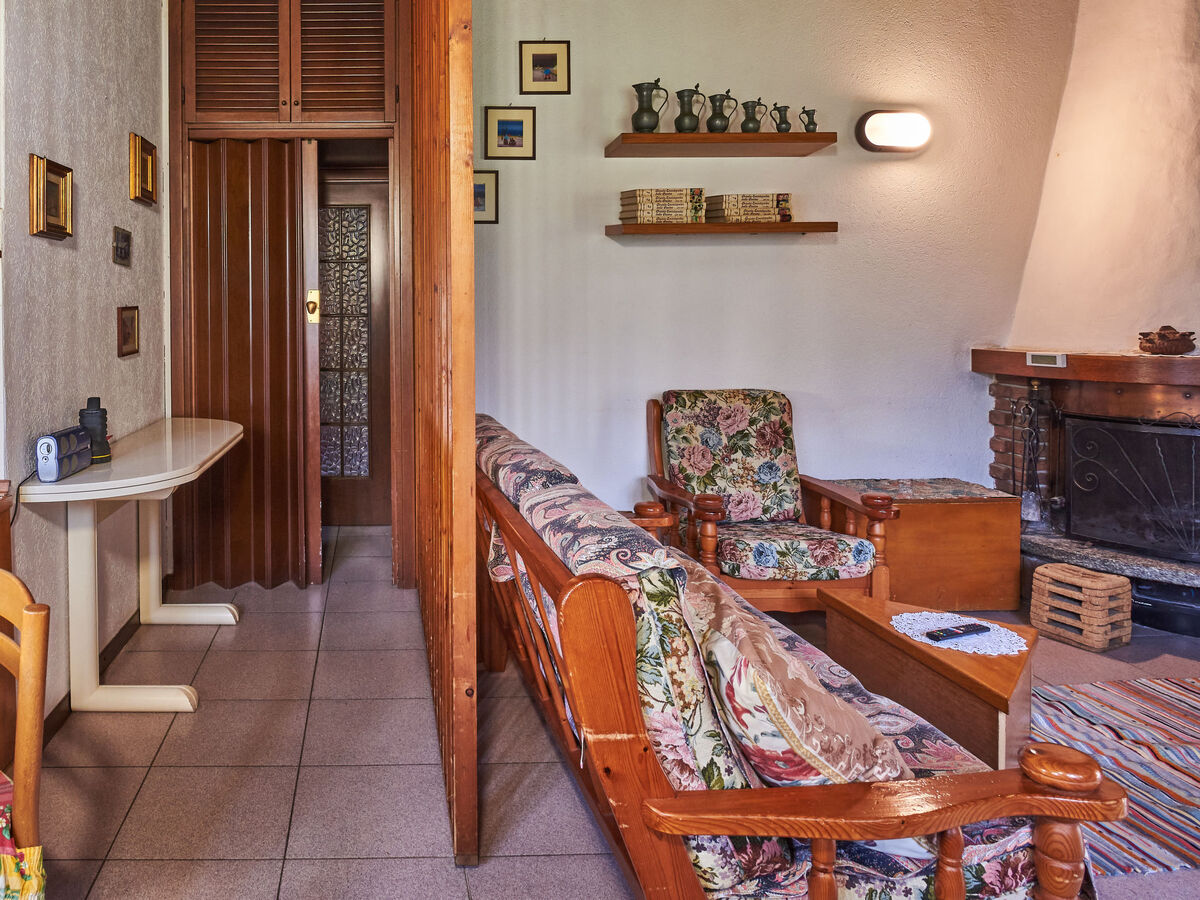 Séjour ouvert avec cheminée et TV (satellite) (écran plat).