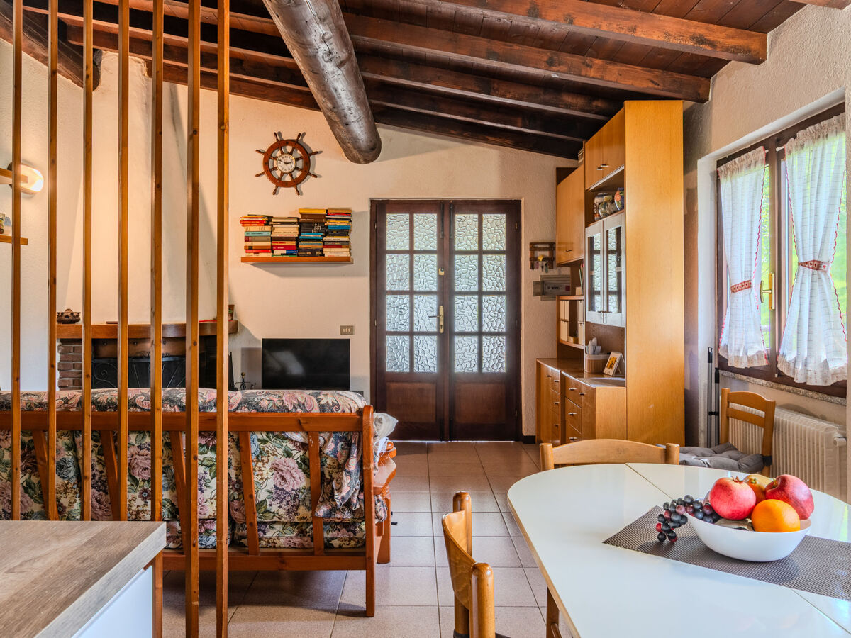 Dans le haut de la station d'Osteno, à 700 m du centre d'Osteno, à 7 km du centre de Porlezza, à 23 km du centre de Lugano, situation isolée, surélevée sur un versant, à 700 m du lac, à 10 m du ruisseau, dans une impasse.