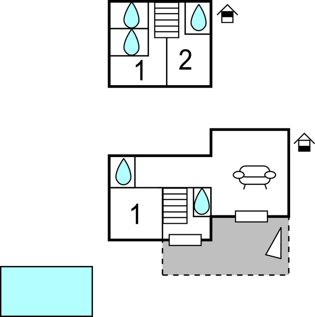 Toilettes: eau chaude/froide, Douchette et baignoire