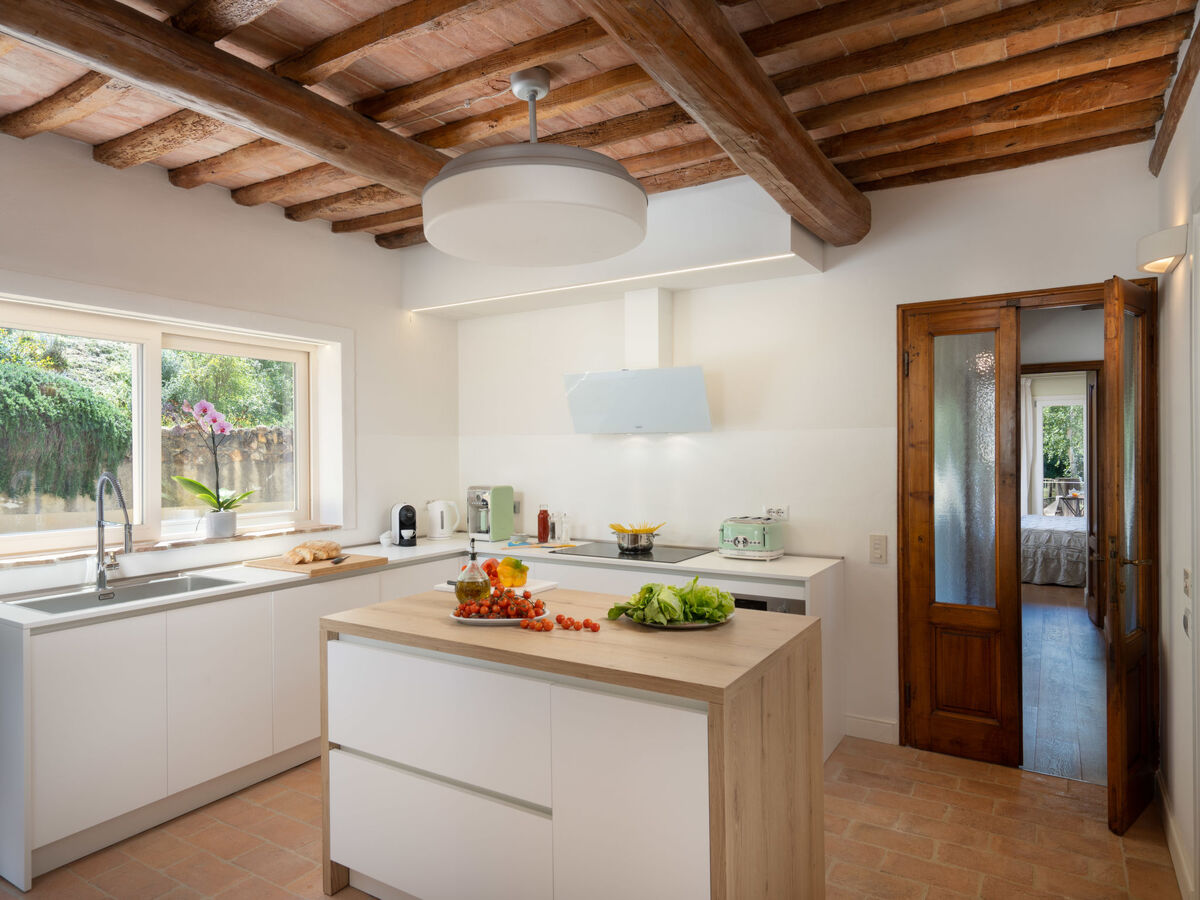 Cuisine ouverte (four, 5 plaques à induction, grille-pain, bouilloire électrique, micro-ondes, cafetière électrique).