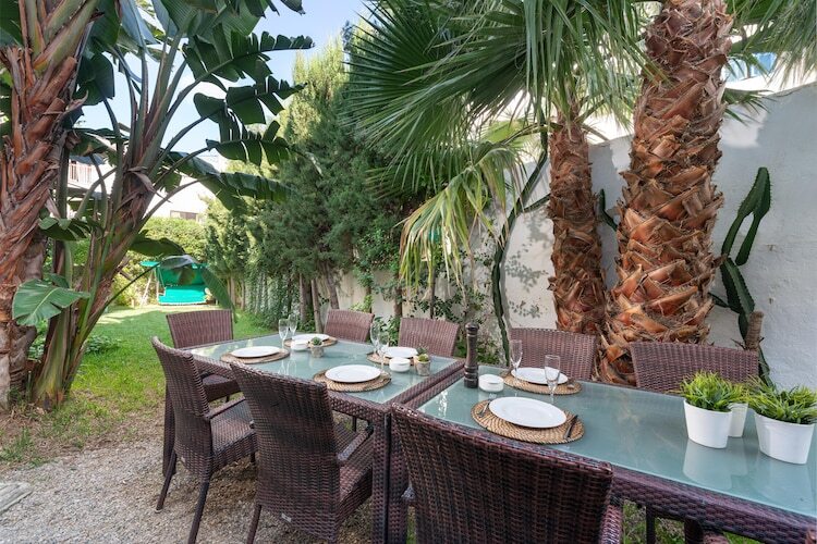 Los exteriores de esta magnÃfica villa son ideales para disfrutar del clima mediterráneo. En el cuidado jardÃn, rodeado de árboles frutales, encontrarán una piscina privada de cloro con unas dimensiones de 5,7x2,8m y un rango de profundidad de entre 1,40 y 1,70m. A su alrededor disponen de tumbonas donde relajarse mientras se broncean y una barbacoa perfecta para preparar exquisitas comidas junto a sus acompañantes. La propiedad está vallada y hay vecinos cerca.