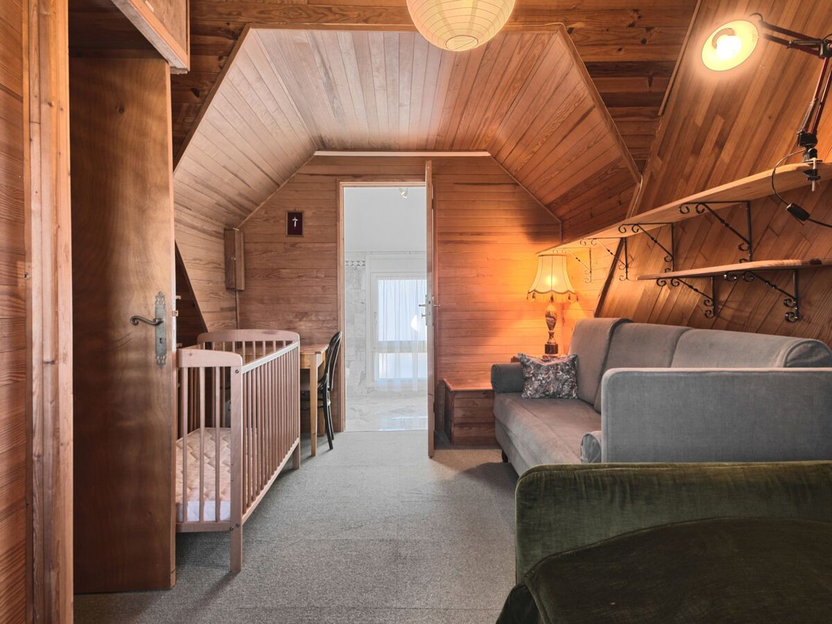 1 chambre, mansardée avec 2 lits (80 cm, longueur 190 cm), lavabo.