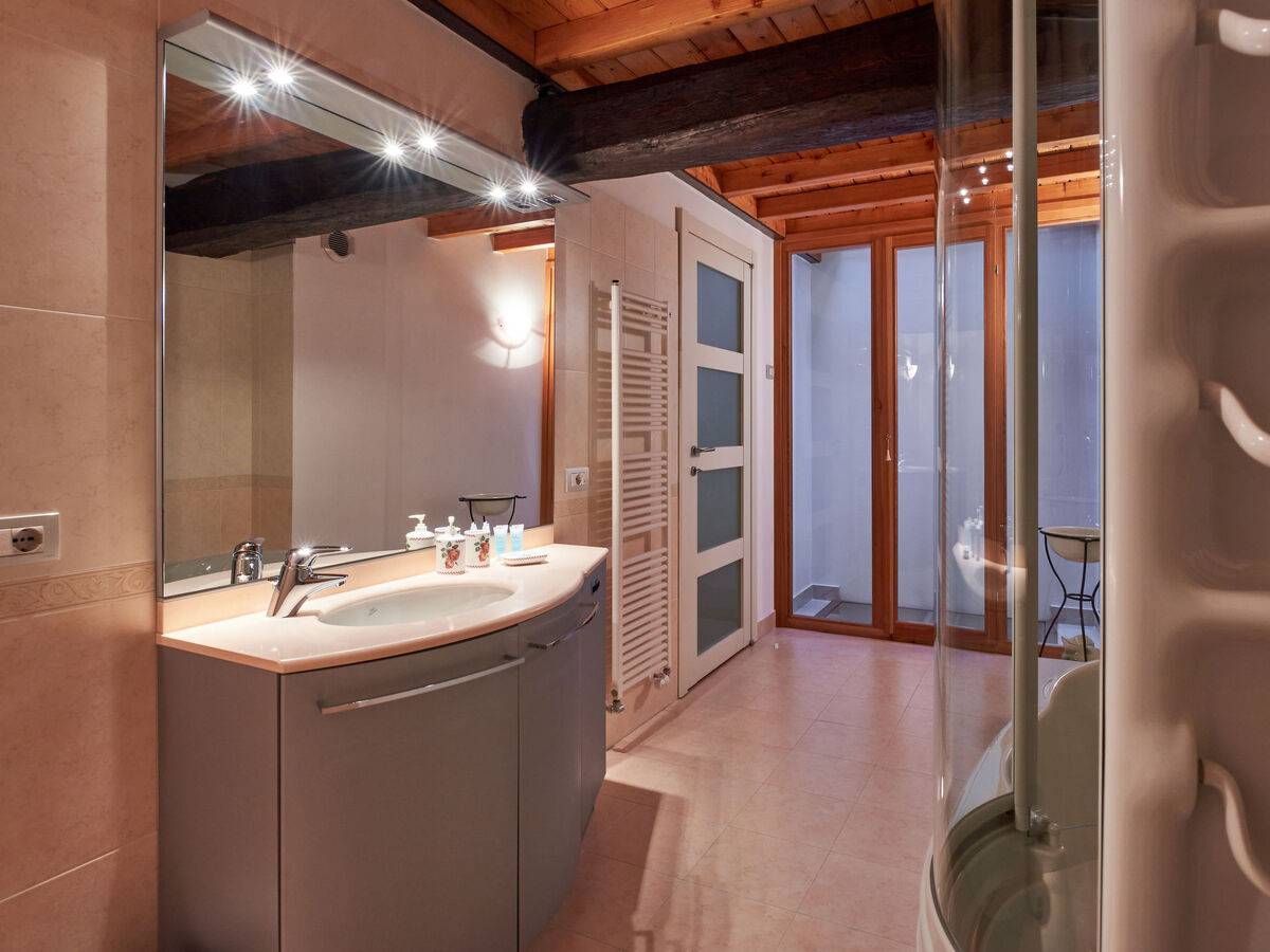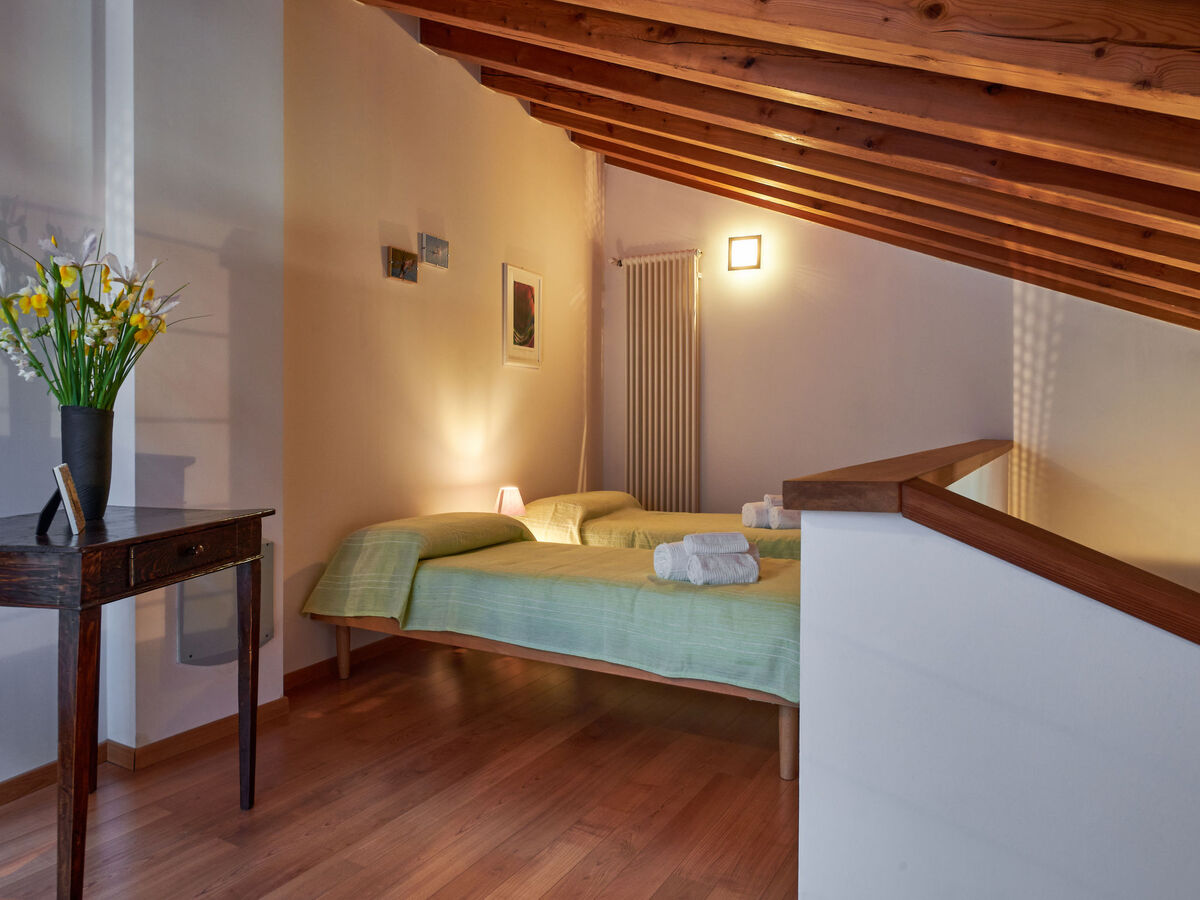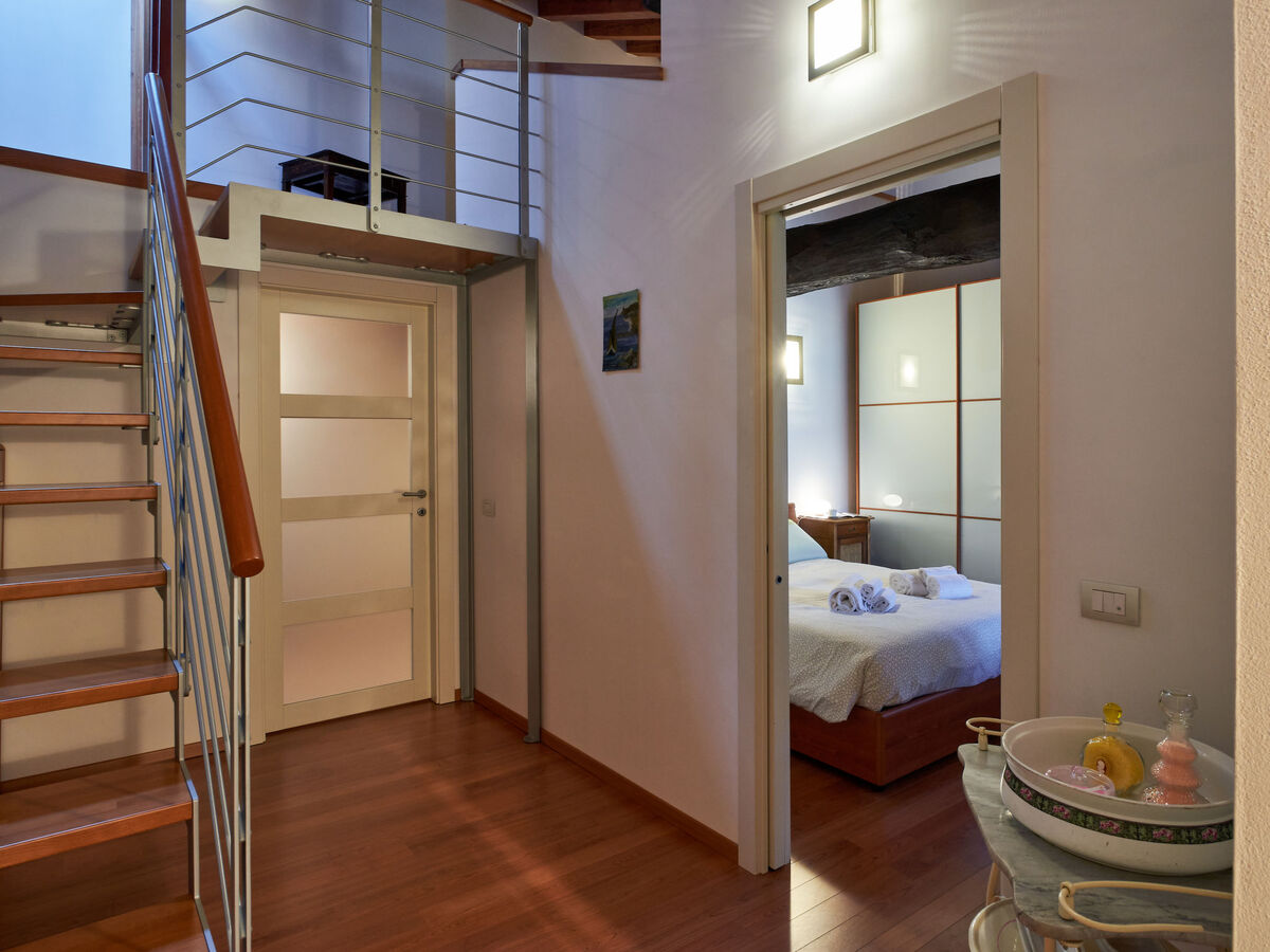 À l'étage supérieur: ouvert 1 chambre double avec porte coulissante.