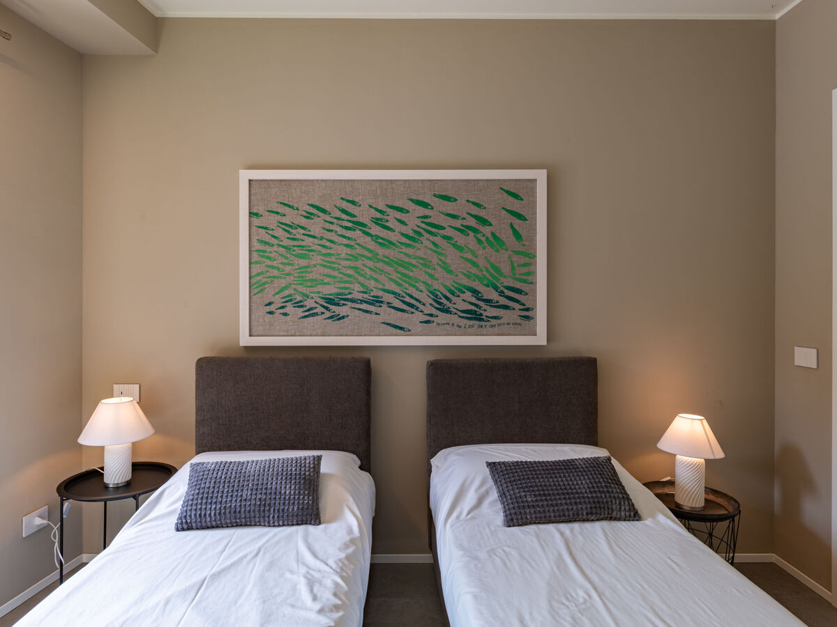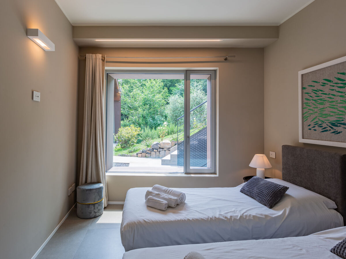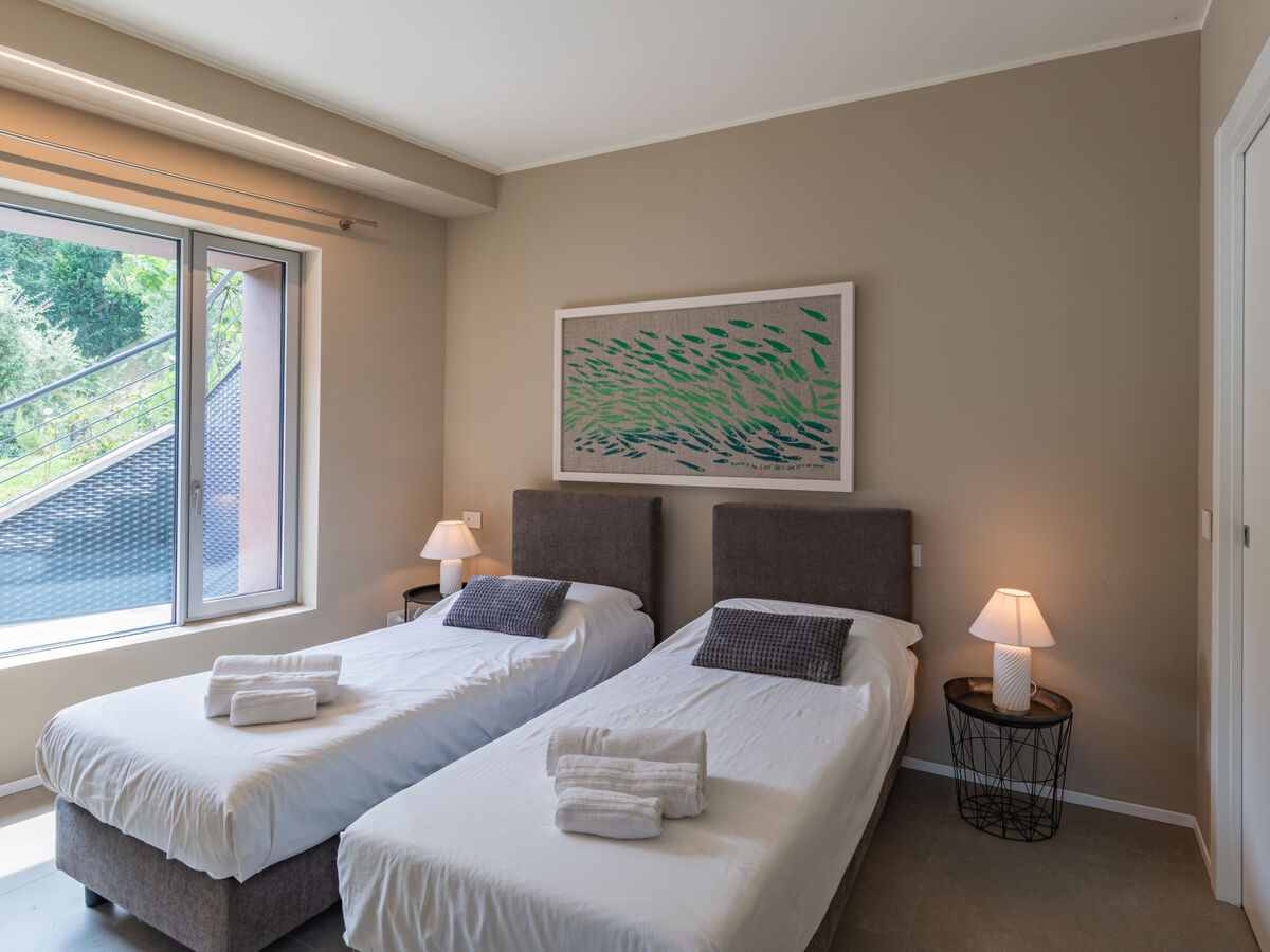 1 chambre avec baie vitrée avec 2 lits et douche/bidet/WC.