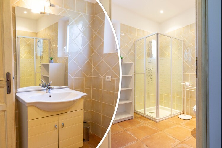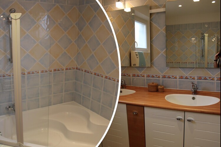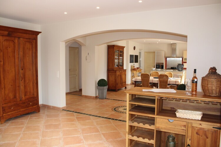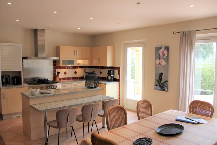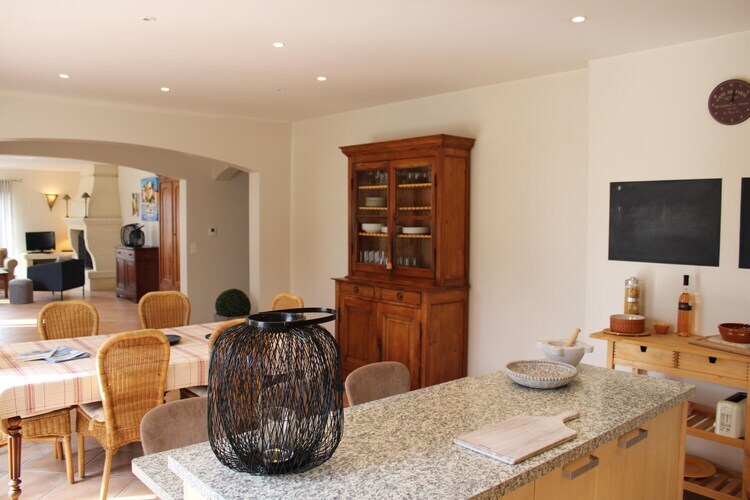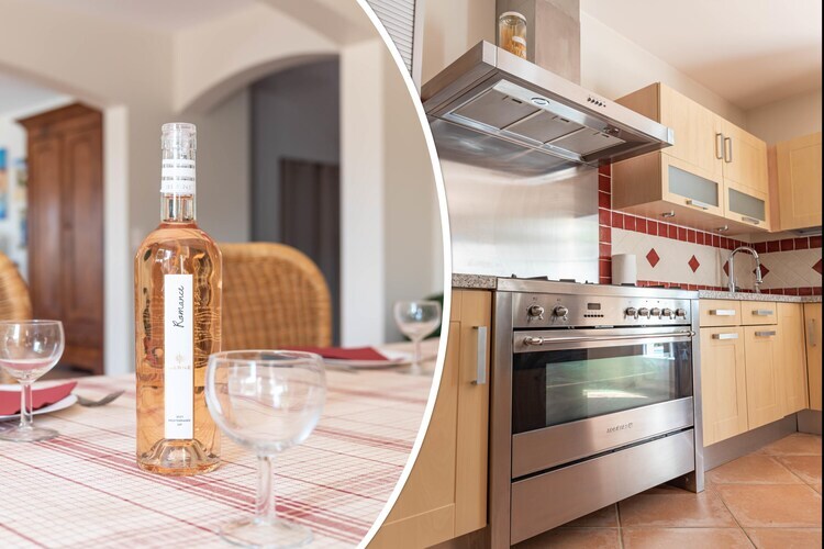 Le salon, la salle à manger et la cuisine disposent de grandes portes-fenêtres menant aux terrasses et au jardin. Le salon dispose d'un joli coin salon avec une cheminée et une connexion Wi-Fi est disponible. La luxueuse cuisine ouverte est adjacente à la salle à manger et est entièrement équipée. La maison est chauffée et refroidie par le sol (25 degrés en moyenne) et les chambres sont dotées de beaucoup d'ambiance et de confort. Du premier étage vous avez une belle vue sur le jardin et la piscine. La belle piscine privée dispose de larges marches où vous pourrez vous détendre ensemble avec une boisson de votre choix. Autour de la piscine, vous trouverez de nombreuses chaises longues, parasols et un salon de jardin. Le grand platane près de la piscine offre l'ombre nécessaire lors des chaudes journées d'été. Sous la terrasse couverte à côté de la cuisine se trouvent une grande table à manger pour 8 personnes et une cuisine extérieure avec plancha électrique.