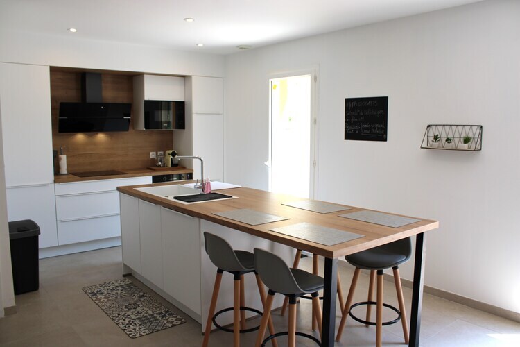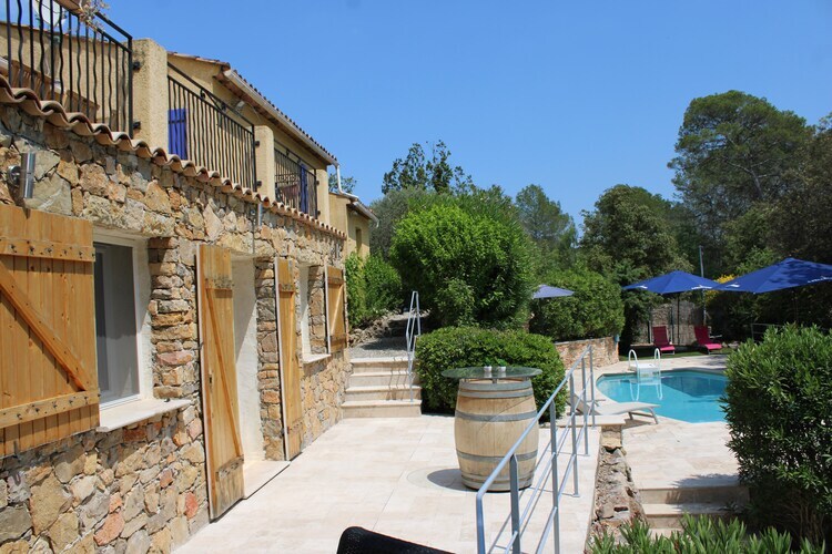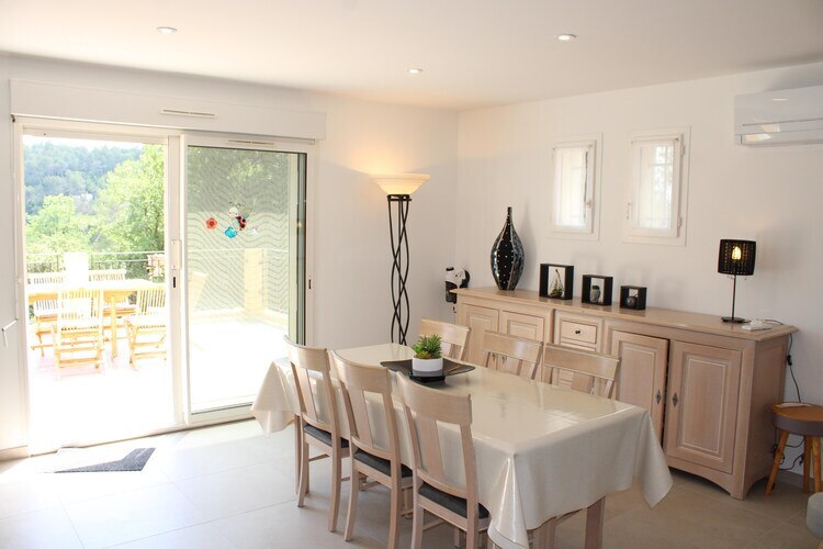 L'une des terrasses est accessible depuis le séjour par une grande porte coulissante. La piscine inférieure, le jardin et la terrasse sont accessibles par un escalier. La piscine peut être chauffée sur demande moyennant un supplément en dehors des mois de juillet et août. La villa offre beaucoup d'intimité et une belle vue sur le jardin coloré avec des cultures typiquement provençales. La maison dispose également d'un terrain de pétanque et d'un grand parking. La jolie villa dispose d'un salon spacieux avec cheminée, WiFi, climatisation, une grande table à manger et une impressionnante porte coulissante donnant sur la terrasse. La cuisine est équipée d'un réfrigérateur américain avec machine à glaçons. Par le séjour, vous atteignez la terrasse avec store électrique.
