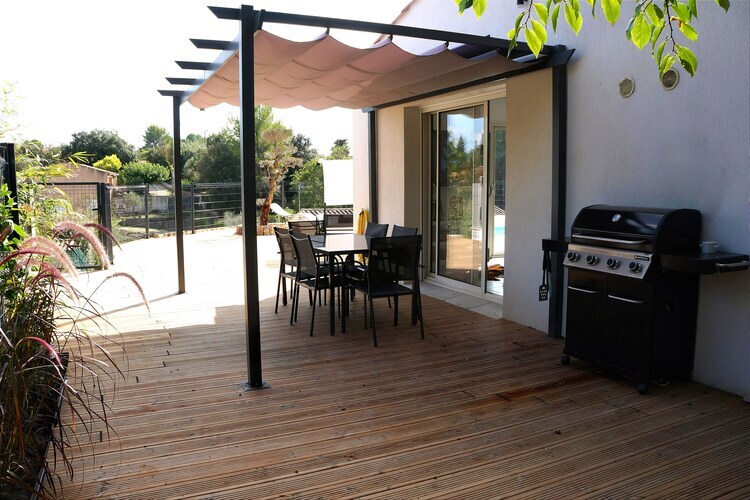 Vous entrez dans un grand séjour ouvert avec des fenêtres coulissantes qui mènent à la terrasse. Le salon dispose d'un coin salon confortable, d'une table à manger offrant beaucoup d'espace et d'une cuisine entièrement équipée. De là, vous accédez aux chambres et à la salle de bain avec une douche à l'italienne spacieuse, reliée à une pièce latérale avec lave-linge et sèche-linge. Le logement dispose de la climatisation et il y a un parking pour 3 voitures. Le pool house, avec salle d'eau et toilettes séparées, offre l'ombre nécessaire. Derrière le pool house se trouvent le terrain de pétanque et le trampoline, où les enfants peuvent se dépenser.
