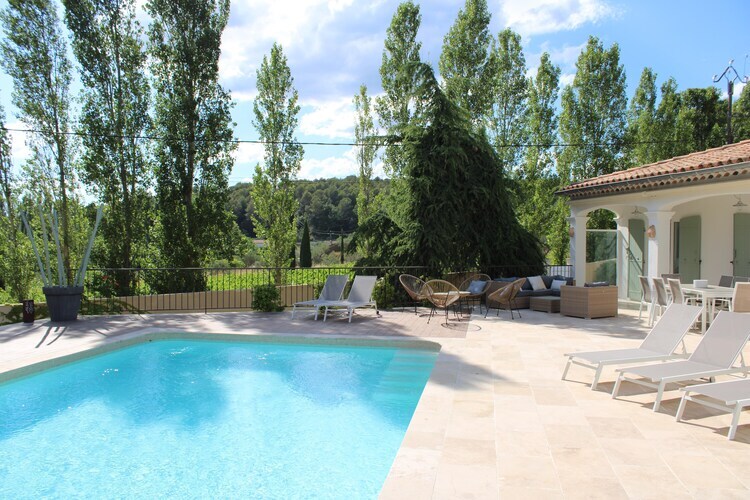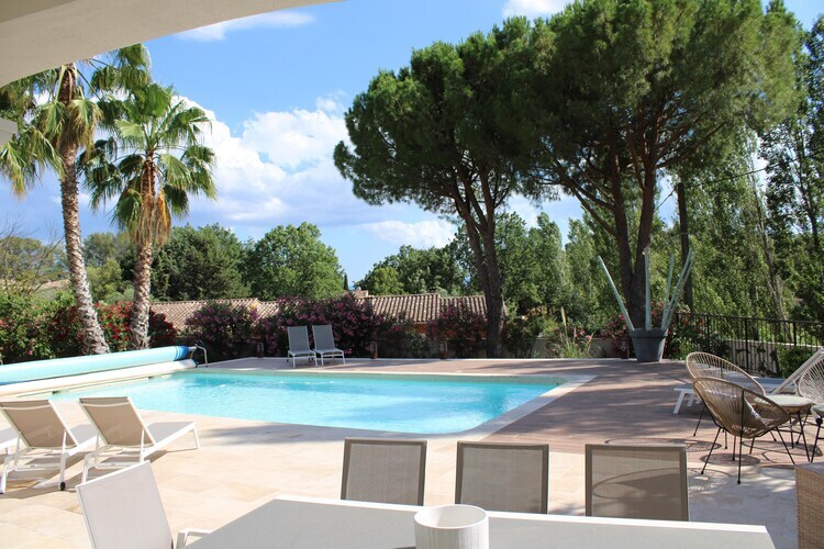 Entourée de verdure rurale et le long d'une route calme entre Lorgues et Saint-Antonin-du-Var, la belle Villa des Trois Palmiers est située sur un domaine de 1700 m² avec un terrain de pétanque et des palmiers. Une fois passé le portail électrique d'entrée, il y a de la place pour environ 4 voitures.