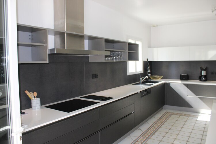 Le hall d'arrivée mène à un grand séjour avec beaucoup de lumière et un accès direct à la terrasse et à la piscine. L'intérieur simple donne à tout un aspect spacieux et il y a un coin salon avec des sièges blancs et une table à manger spacieuse. Vous trouverez ensuite une cuisine entièrement équipée pour préparer un délicieux repas. La chambre principale est située au sud avec une belle vue sur la piscine et une des chambres est idéale pour les enfants. La maison est équipée de la climatisation et d'un refroidissement par le sol. Les deux systèmes peuvent être transformés en système de chauffage les jours les plus froids. La terrasse couverte avec une belle table extérieure offre l'ombre nécessaire, vous pouvez organiser des barbecues agréables et profiter des journées ensoleillées dans ou autour de la piscine sur les confortables chaises longues.