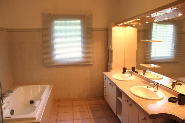 Rez-de-chaussée: (cuisine(table, foyer, bouilloire, grille-pain, cafetière/percolateur, four, micro ondes, lave-vaisselle , combinaison réfrigérateur/congélateur, lavabo), salle à manger-salon(TV, table, coin salon), chambre(lit double, TV, climatisation), chambre(lit double, climatisation), chambre(lit double, climatisation), chambre(canapé-lit double), salle de bains(Bain à bulles, douche, lavabo), salle de bains(douche, lavabo)) garage, table, coin salon, balcon ou terrasse, climatisation, jardin, mobilier de jardin, barbecue, chaises longues, piscine(privé)