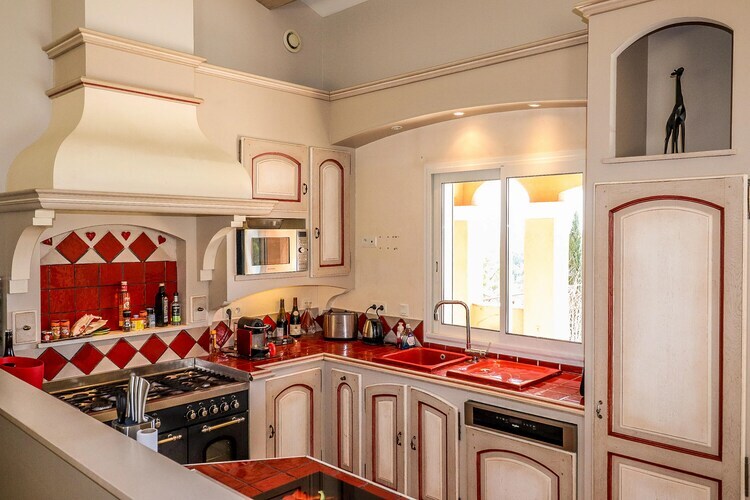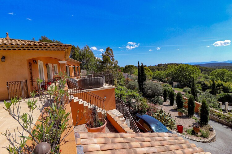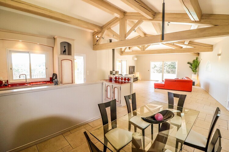 Par un escalier depuis le jardin, vous atteignez la terrasse supérieure avec piscine (y compris marches de plain-pied), cuisine extérieure couverte et table à manger spacieuse. Idéal pour des soirées sympas ! Cette partie peut être fermée par un portail. De l'autre côté, vous trouverez la terrasse du séjour avec un coin salon cosy, et toujours avec cette belle vue sur les collines et vallées verdoyantes. À l'intérieur, il y a un salon spacieux avec cheminée, TV, WiFi, Chromecast et système de musique via Bluetooth. La cuisine ouverte de style provençal est équipée de toutes les commodités. Toutes les chambres sont très confortables et la climatisation assure un rafraîchissement lors des chaudes journées d'été. Les chambres du rez-de-chaussée ont des portes françaises donnant sur le jardin. La piscine peut être chauffée en option et sur demande, en dehors des mois de juillet et août, pour 100 euros la semaine.