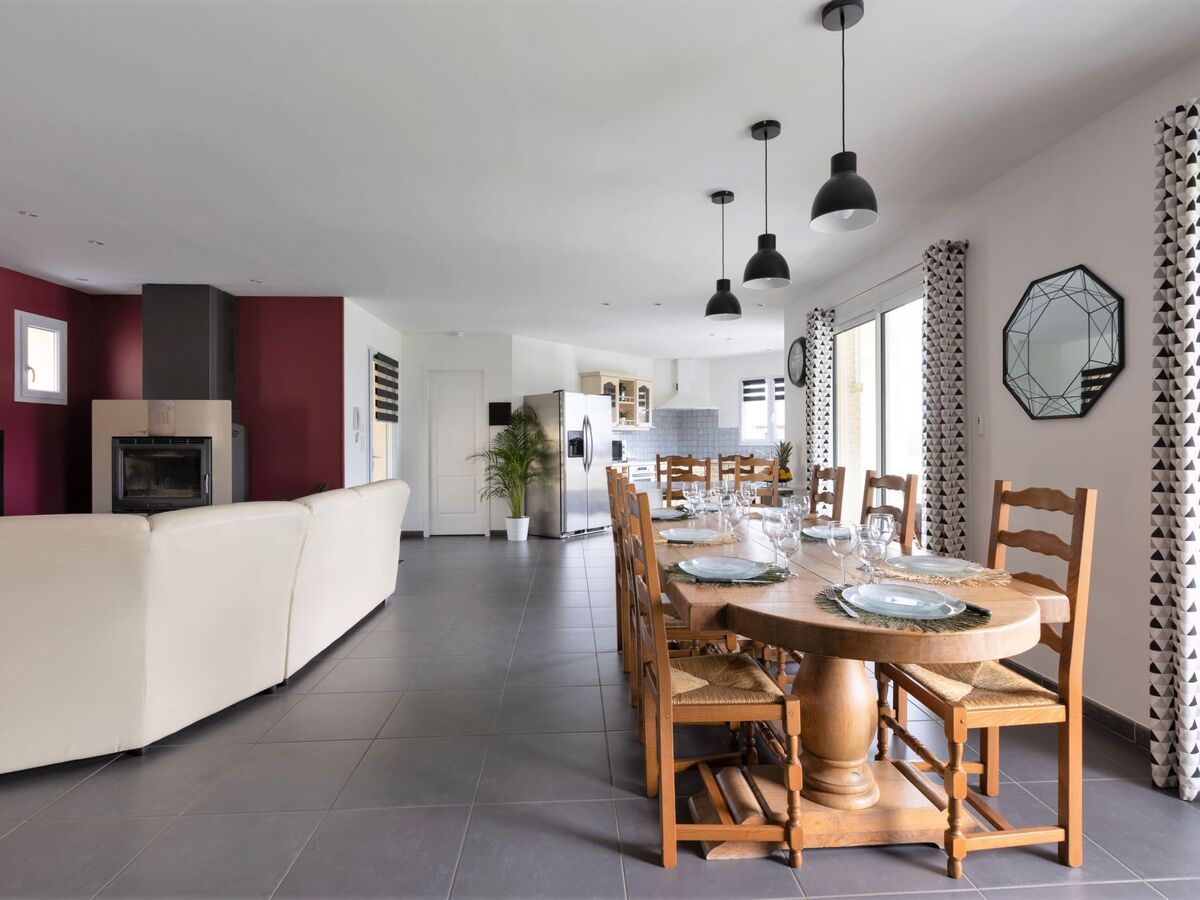 Spacieux et clair, aménagement confortable et agréable: grand séjour/salle à manger 60 m2 avec table pour les repas et TV (écran plat).