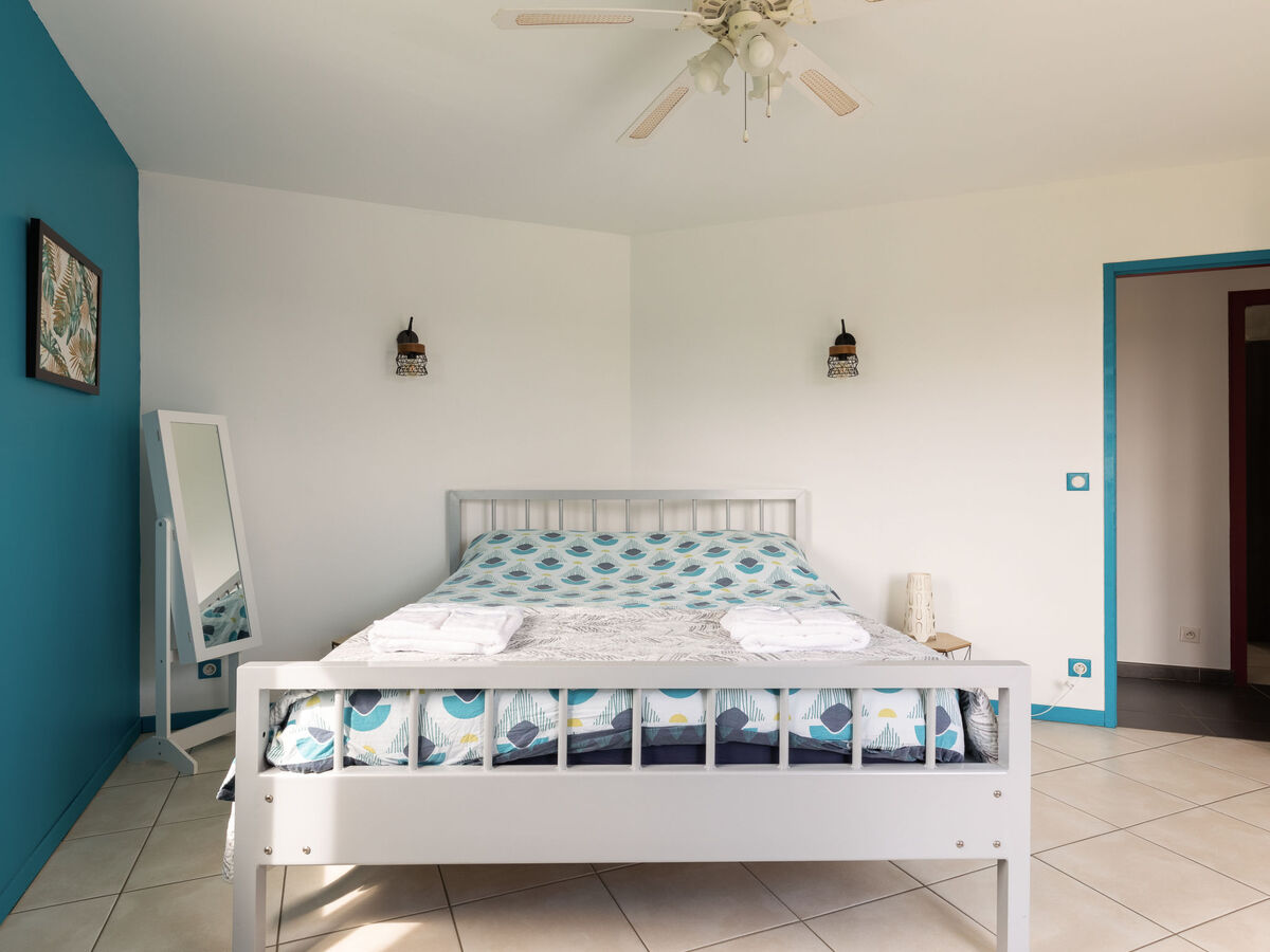 1 chambre avec 1 grand-lit (160 cm, longueur 200 cm).