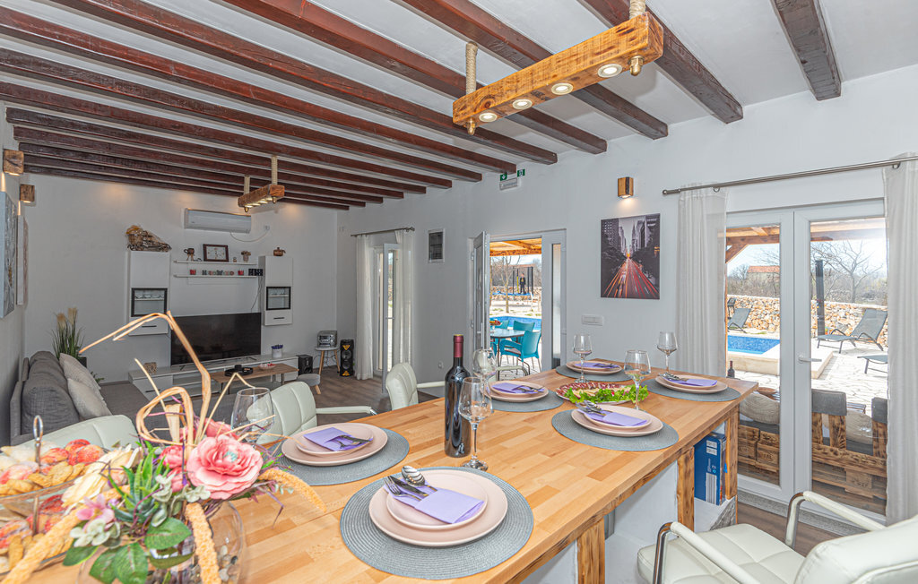 Passez des vacances détendues avec votre famille à Drnis-Miljevci. La belle maison moderne s'étend sur deux étages et vous offre, à vous et à vos proches, suffisamment de place pour vous reposer et passer du temps ensemble. La salle de séjour au rez-de-chaussée devient votre point de rencontre naturel et vous invite à cuisiner, à jouer et à regarder un film. De là, sortez sur la terrasse couverte, l'endroit idéal pour prendre vos repas ensemble. Vous pourrez également y faire des barbecues le soir et vous amuser toute la journée en vous baignant dans la piscine.