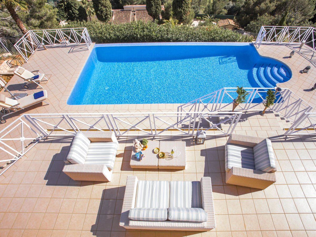 A usage privé: beau jardin sur plusieurs niveaux plantes et arbres, piscine (10 x 5 m, profondeur 110 - 210 cm, disponibilité saisonnière: 01.Jan.