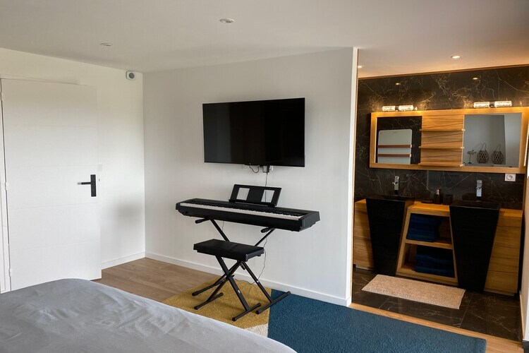 Rez-de-chaussée: (chambre(lit double(160 x 200 cm), TV), chambre(lit double(160 x 200 cm), TV), salle de bains(douche), salle de bains(douche), WC) Au 1er étage: (salon(TV), cuisine ouverte(bouilloire, grille-pain, plaque de cuisson, cafetière/percolateur, four, lave-vaisselle , réfrigérateur), balcon) lave-linge , chauffage(électrique), terrasse, parking