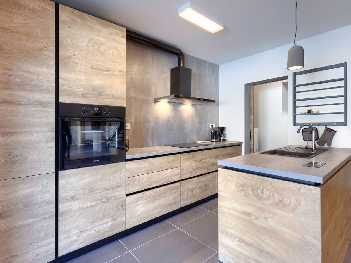 Cuisine ouverte (four, lave-vaisselle, 4 plaques à induction, bouilloire électrique, congélateur, cafetière électrique).