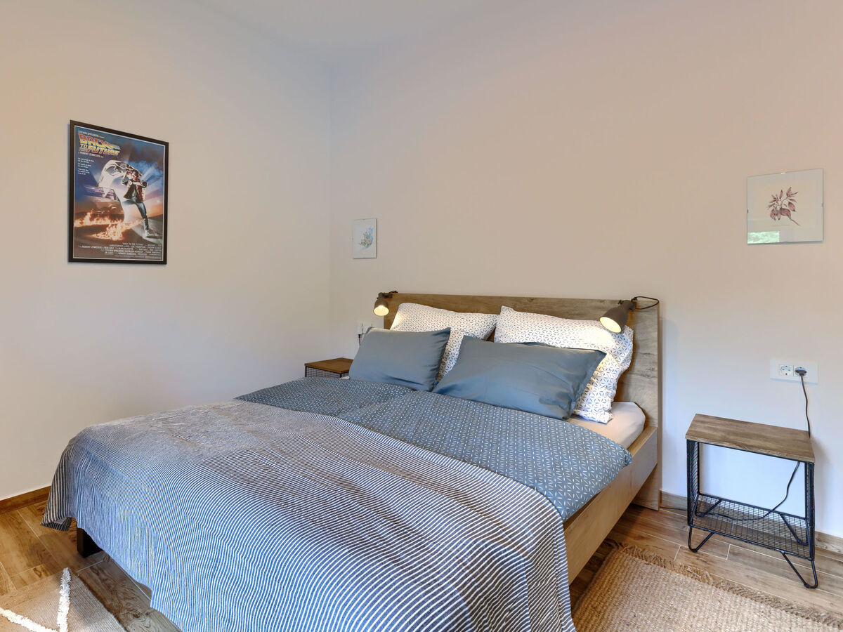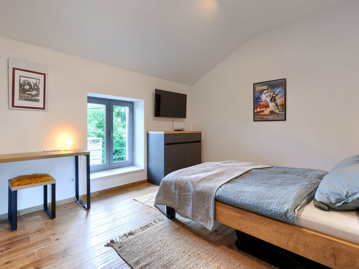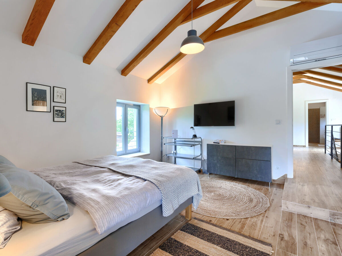 À l'étage supérieur: 1 chambre avec 1 grand-lit (160 cm, longueur 200 cm), TV (satellite) (écran plat), air-conditionné.