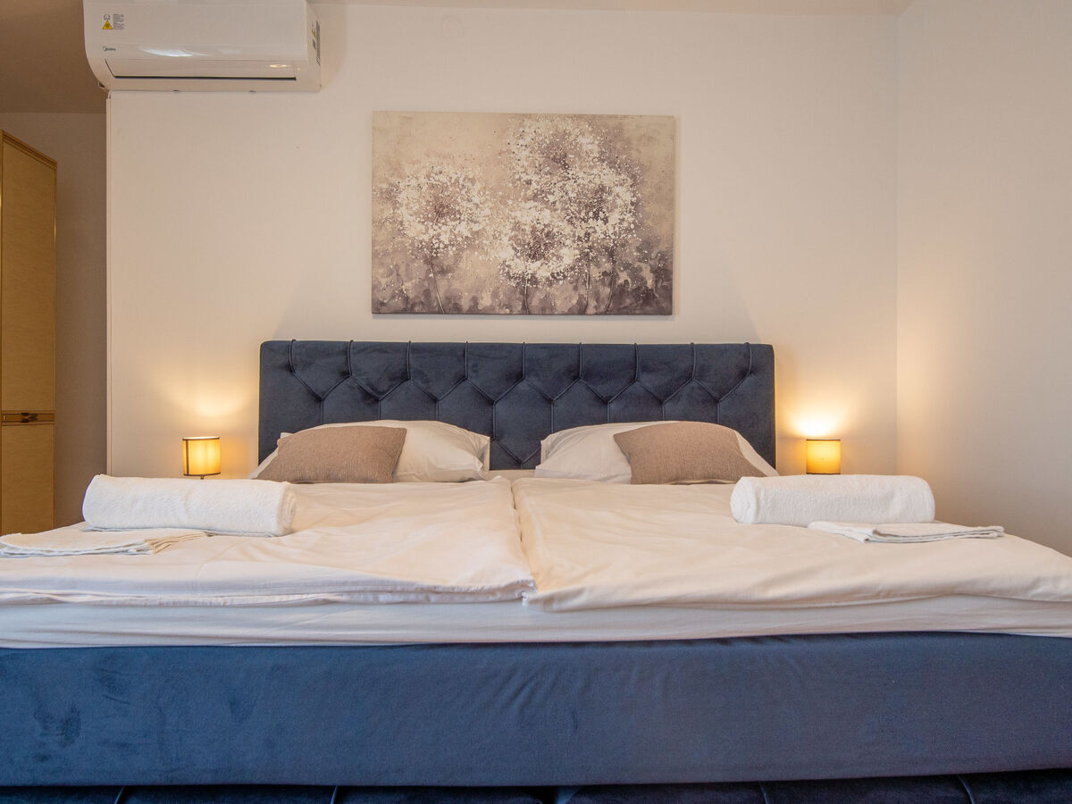 1 chambre avec 1 lit double (2 x 90 cm, longueur 190 cm), air-conditionné.