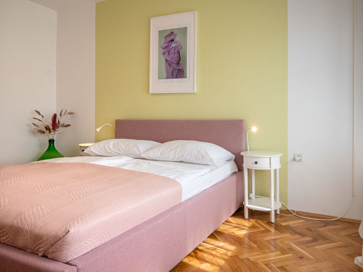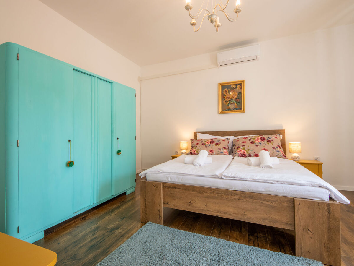 1 chambre avec 1 grand-lit (160 cm, longueur 200 cm), air-conditionné.