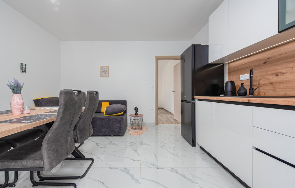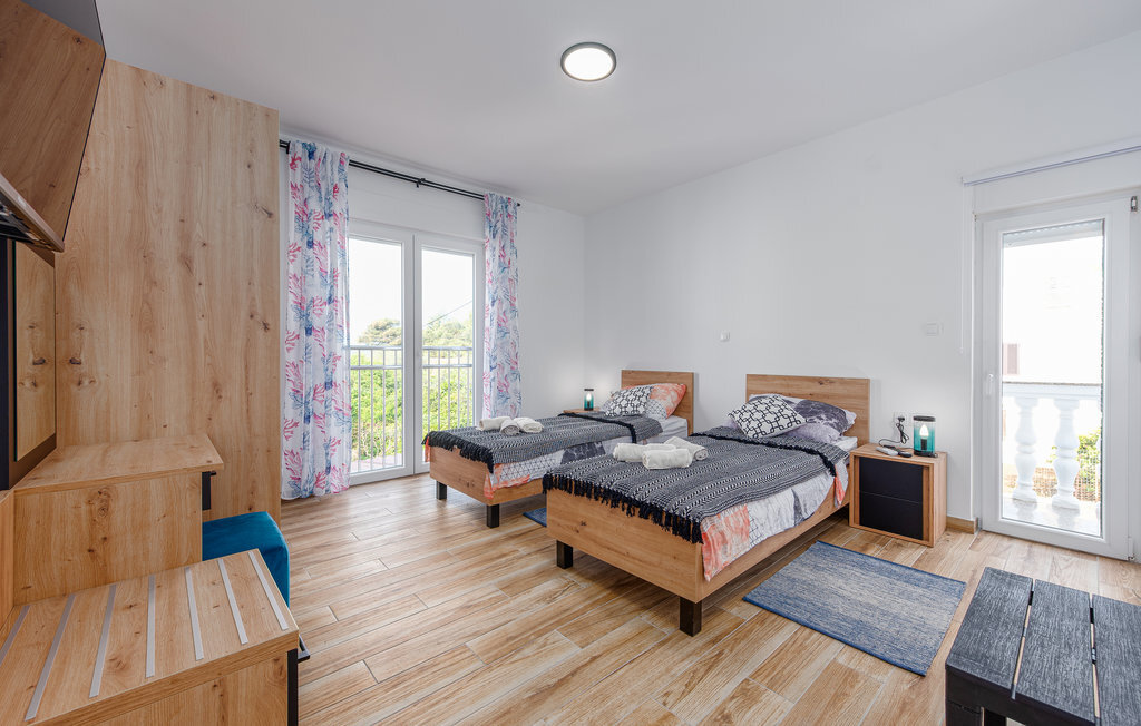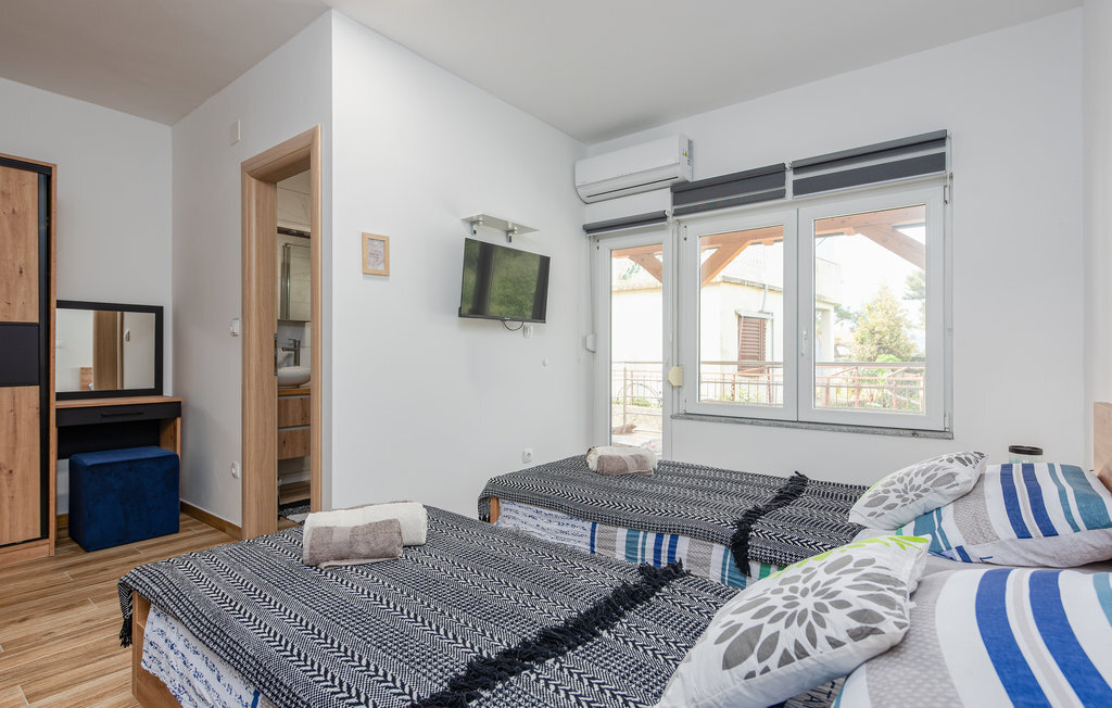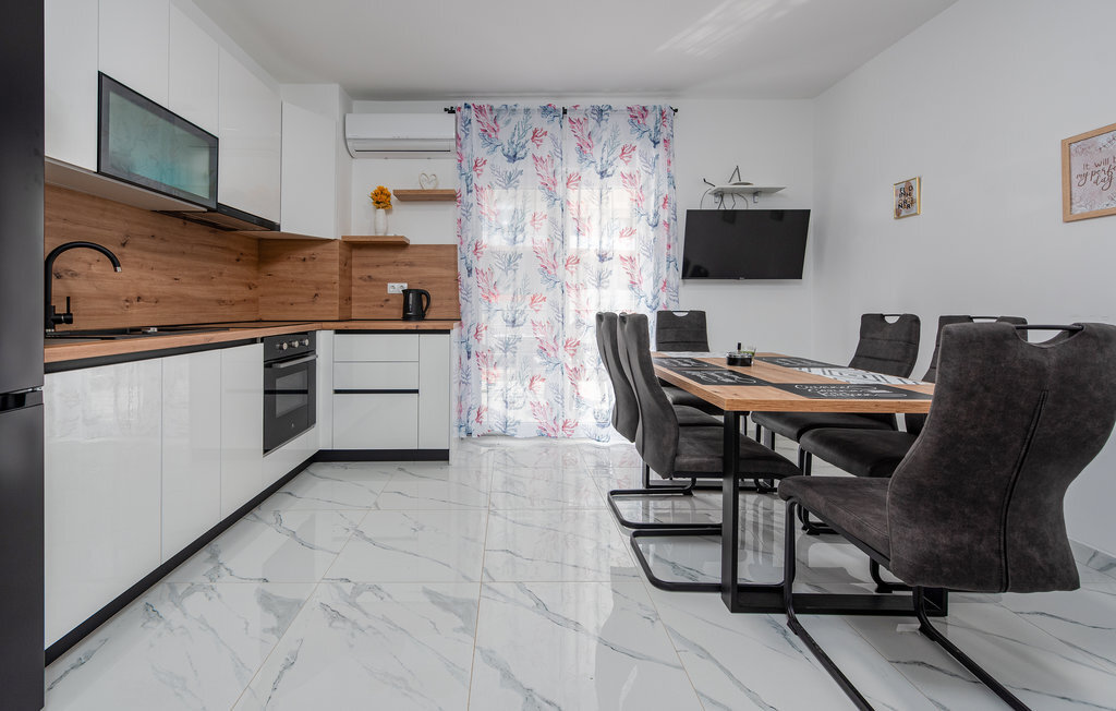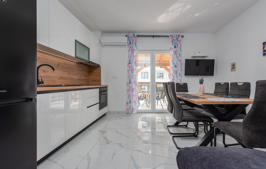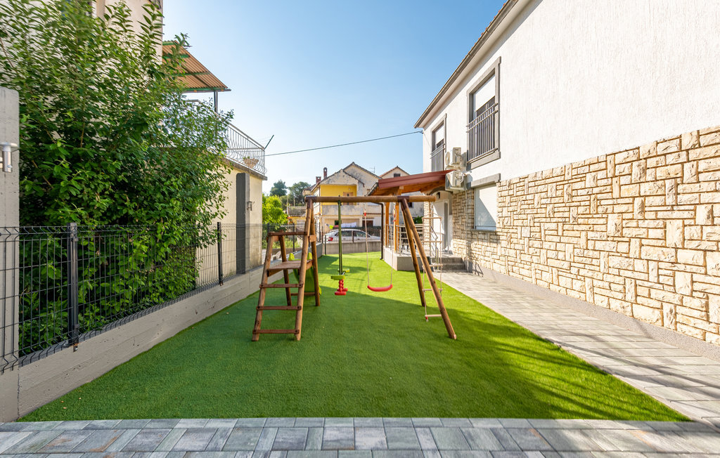 Passez de superbes vacances dans le beau quartier de Borik. La maison de vacances se compose de deux appartements et de chambres supplémentaires sur deux étages. L'aménagement du logement est confortable et baigne dans la lumière. Vous pourrez vous y sentir à l'aise, jouer à des jeux de société et savourer vos repas sur le balcon couvert.