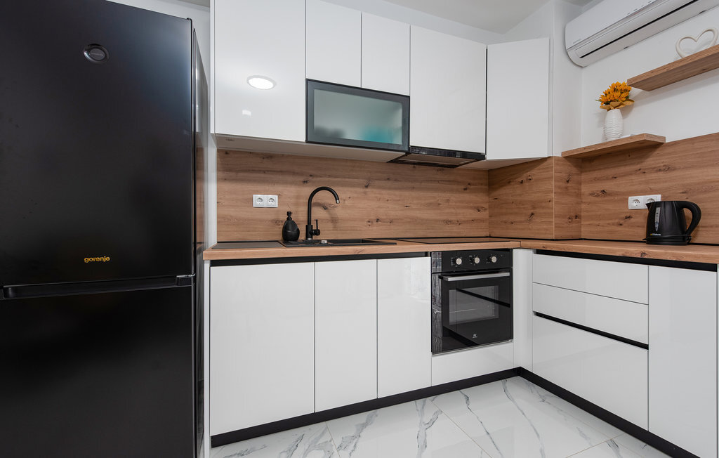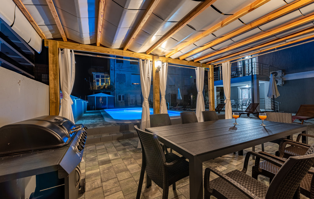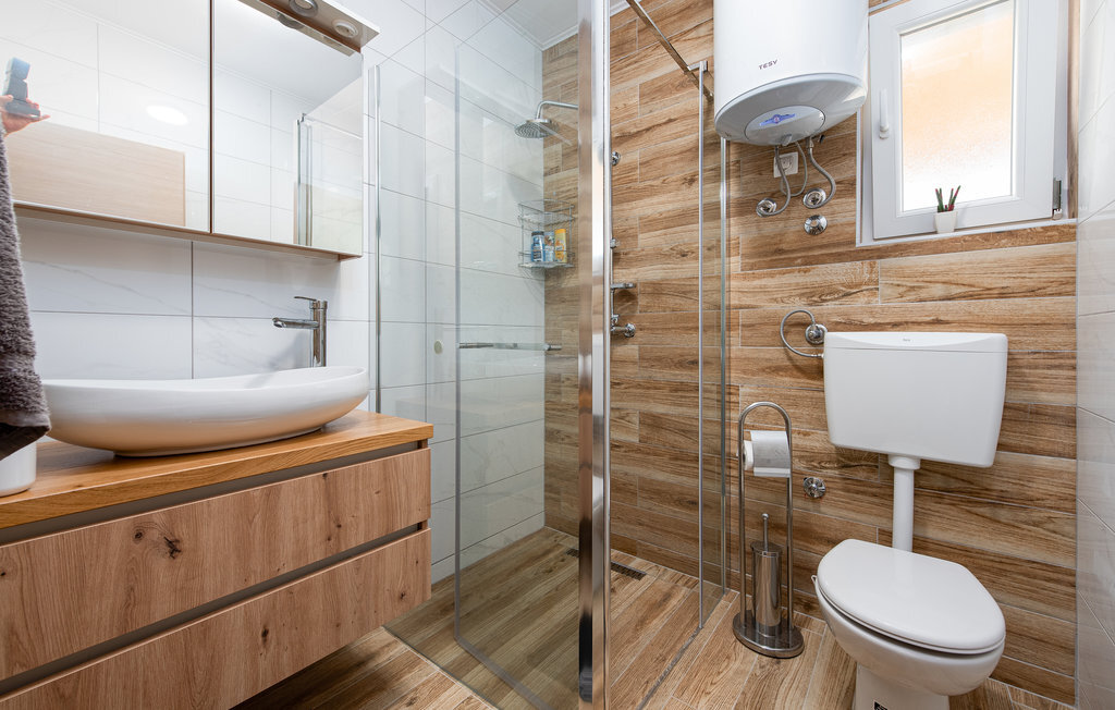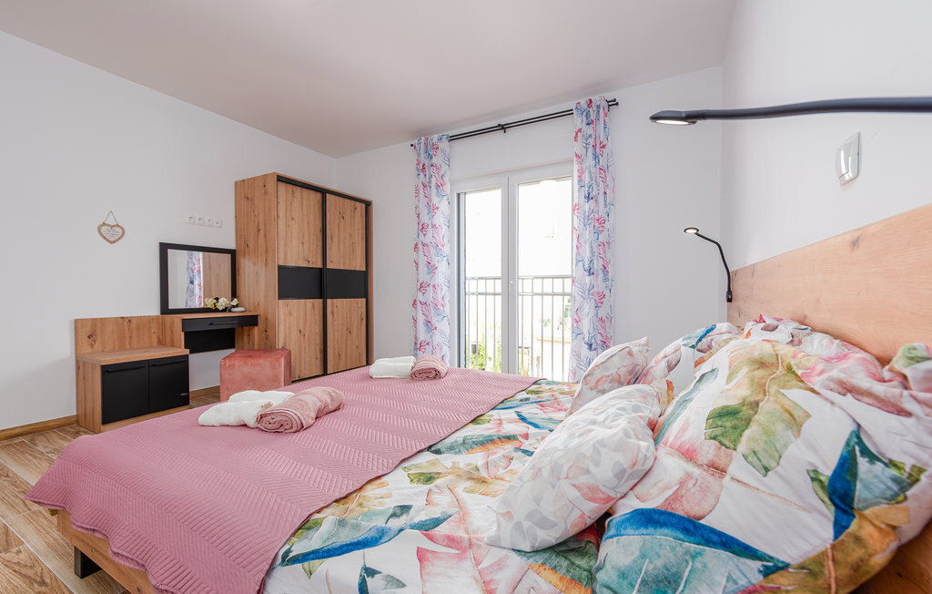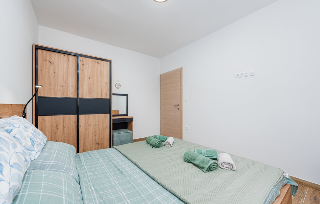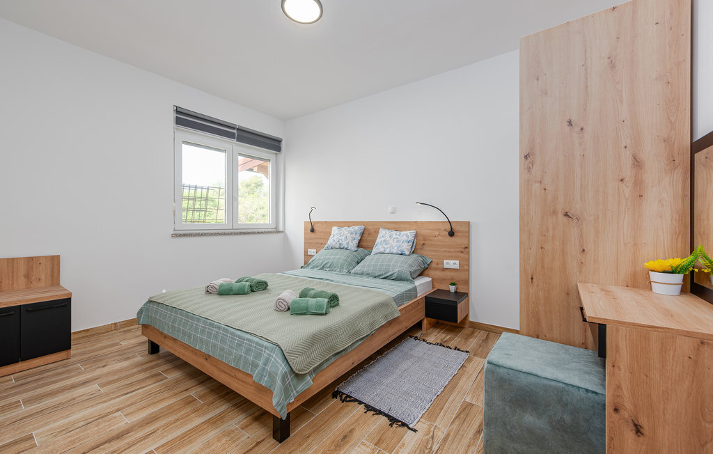 Passez de superbes vacances dans le beau quartier de Borik. La maison de vacances se compose de deux appartements et de chambres supplémentaires sur deux étages. L'aménagement du logement est confortable et baigne dans la lumière. Vous pourrez vous y sentir à l'aise, jouer à des jeux de société et savourer vos repas sur le balcon couvert.