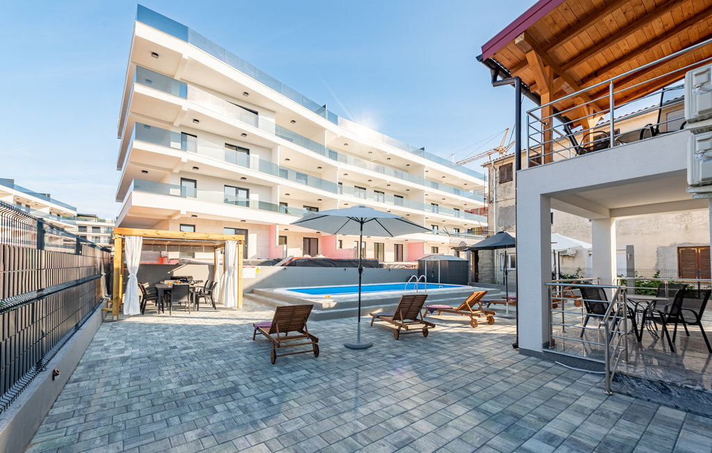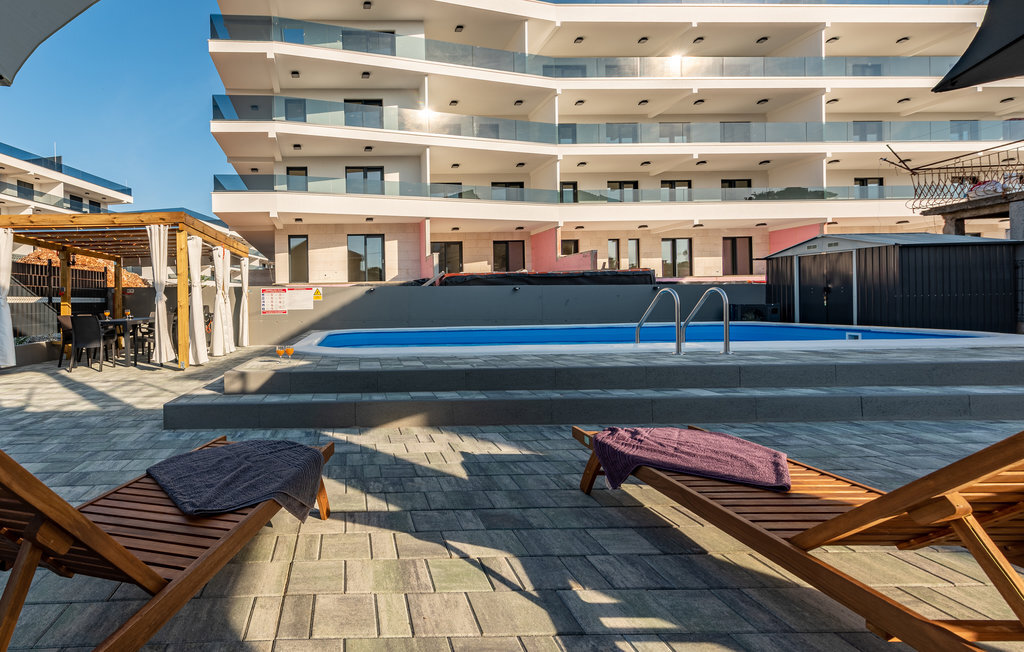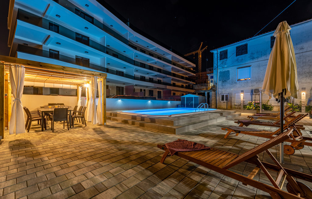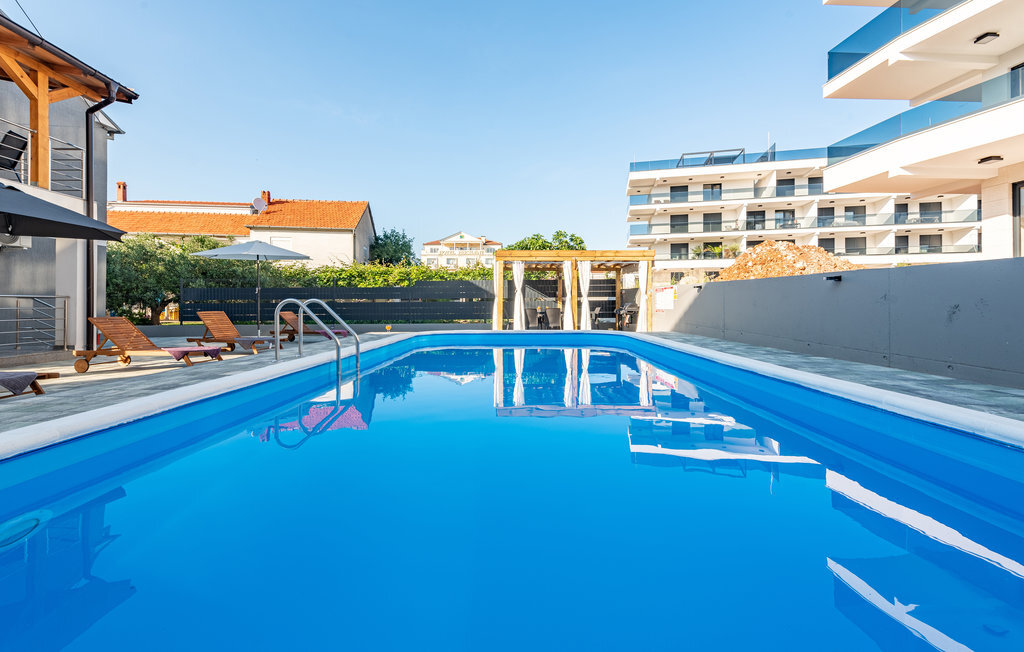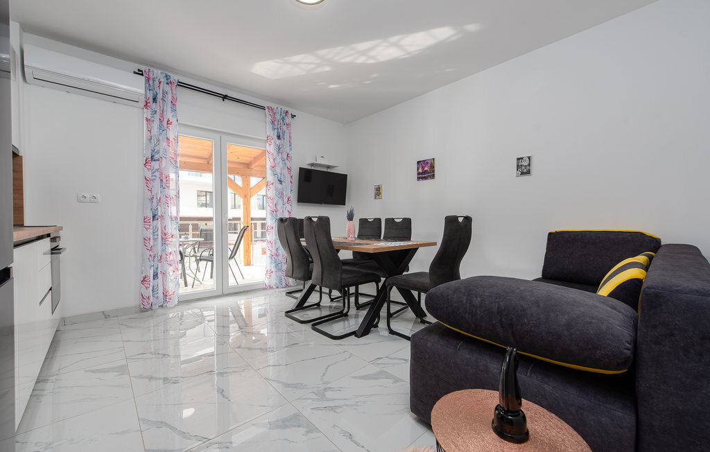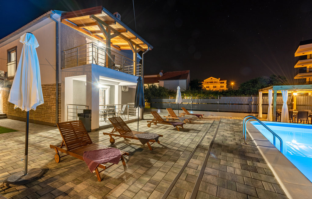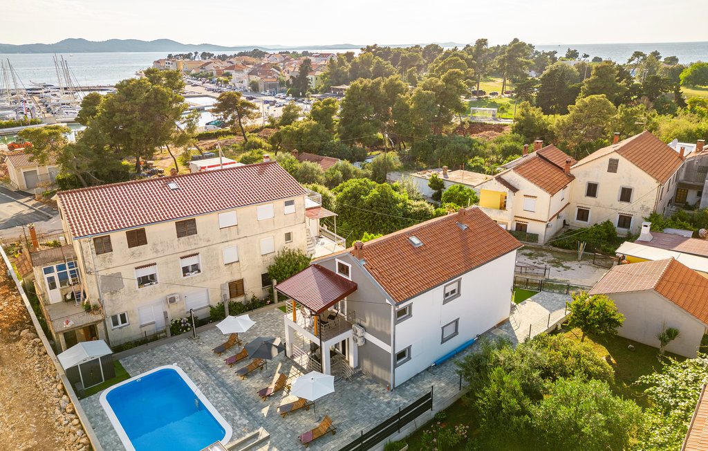Près du port de plaisance de Zadar, cette grande maison de vacances moderne vous accueille.