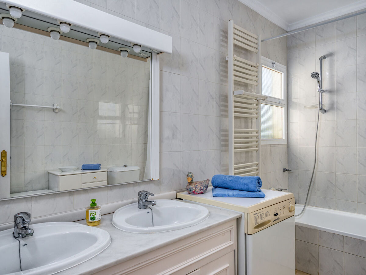 Cuisine (four, lave-vaisselle, 4 plaques vitrocéramiques, grille-pain, micro-ondes, congélateur, cafetière électrique) avec bar.