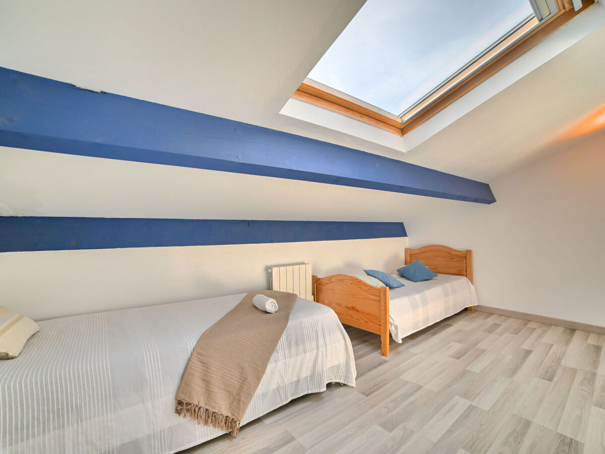 À l'étage supérieur: 2 chambres, chaque chambre avec: 1 grand-lit (140 cm, longueur 190 cm).