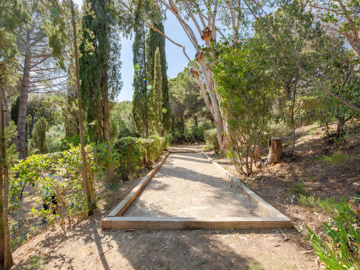 Terrain de pétanque, terrain de volley-ball, meubles de jardin, barbecue.