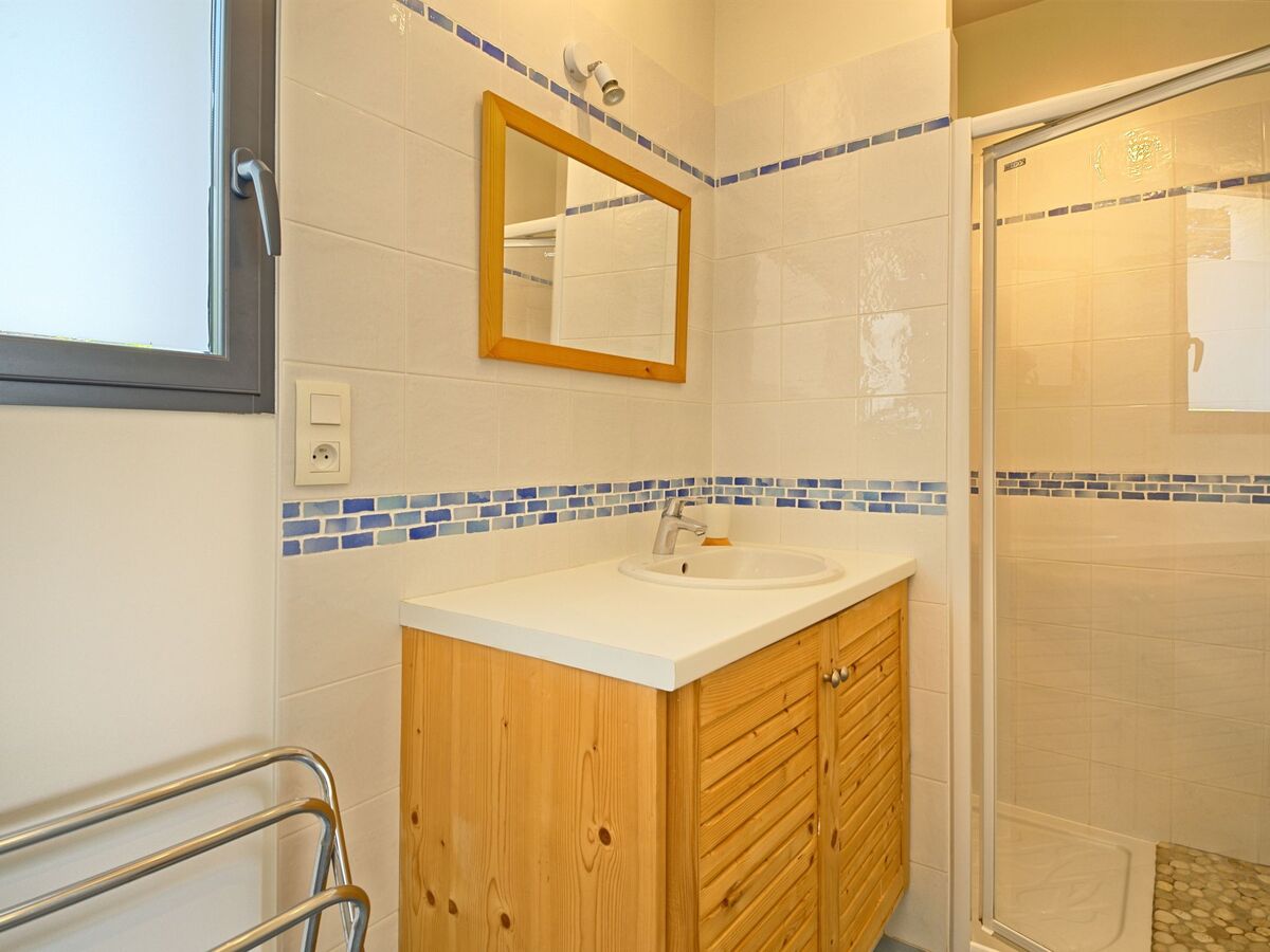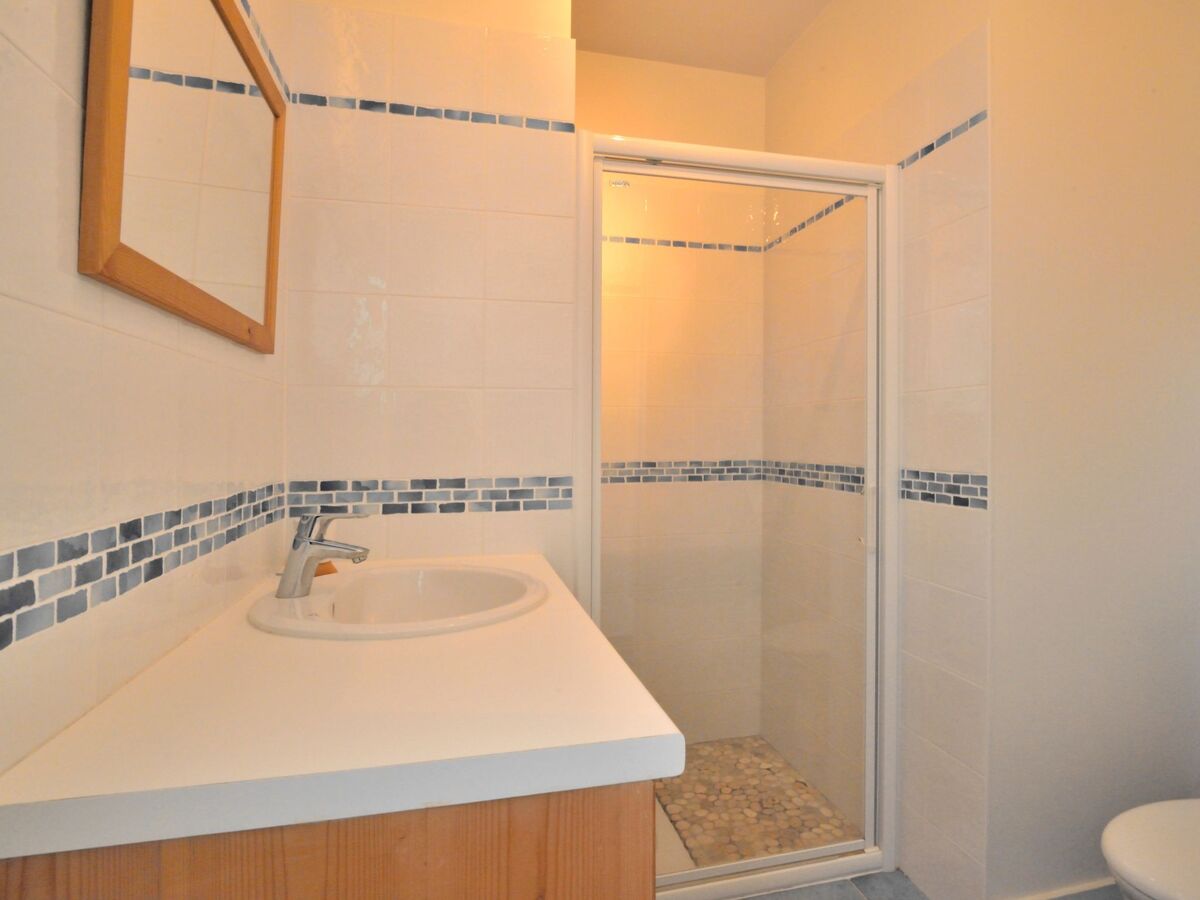 1 chambre avec 1 grand-lit (140 cm, longueur 190 cm), douche/WC.