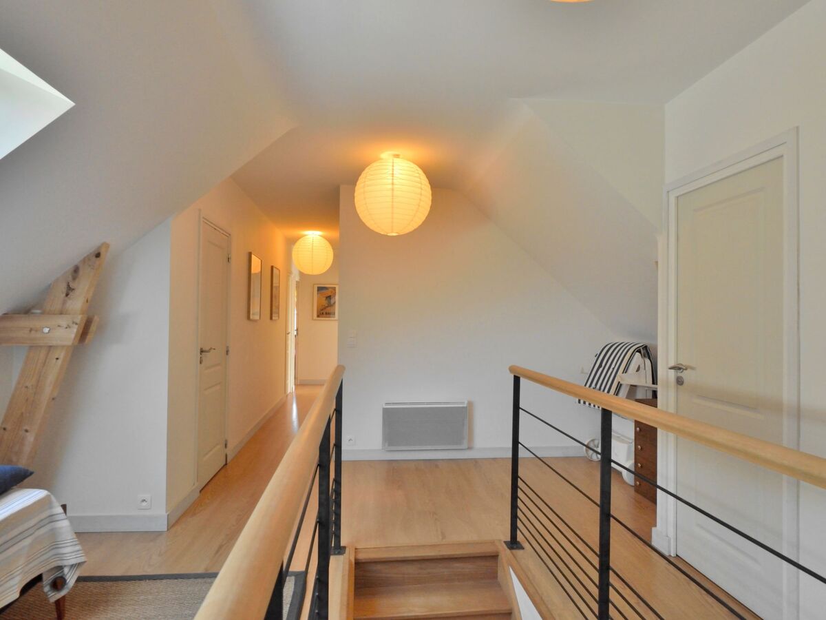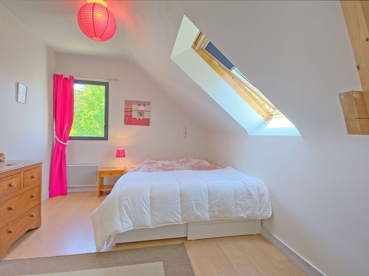 À l'étage supérieur: 1 chambre, mansardée avec 1 grand-lit (140 cm, longueur 190 cm).