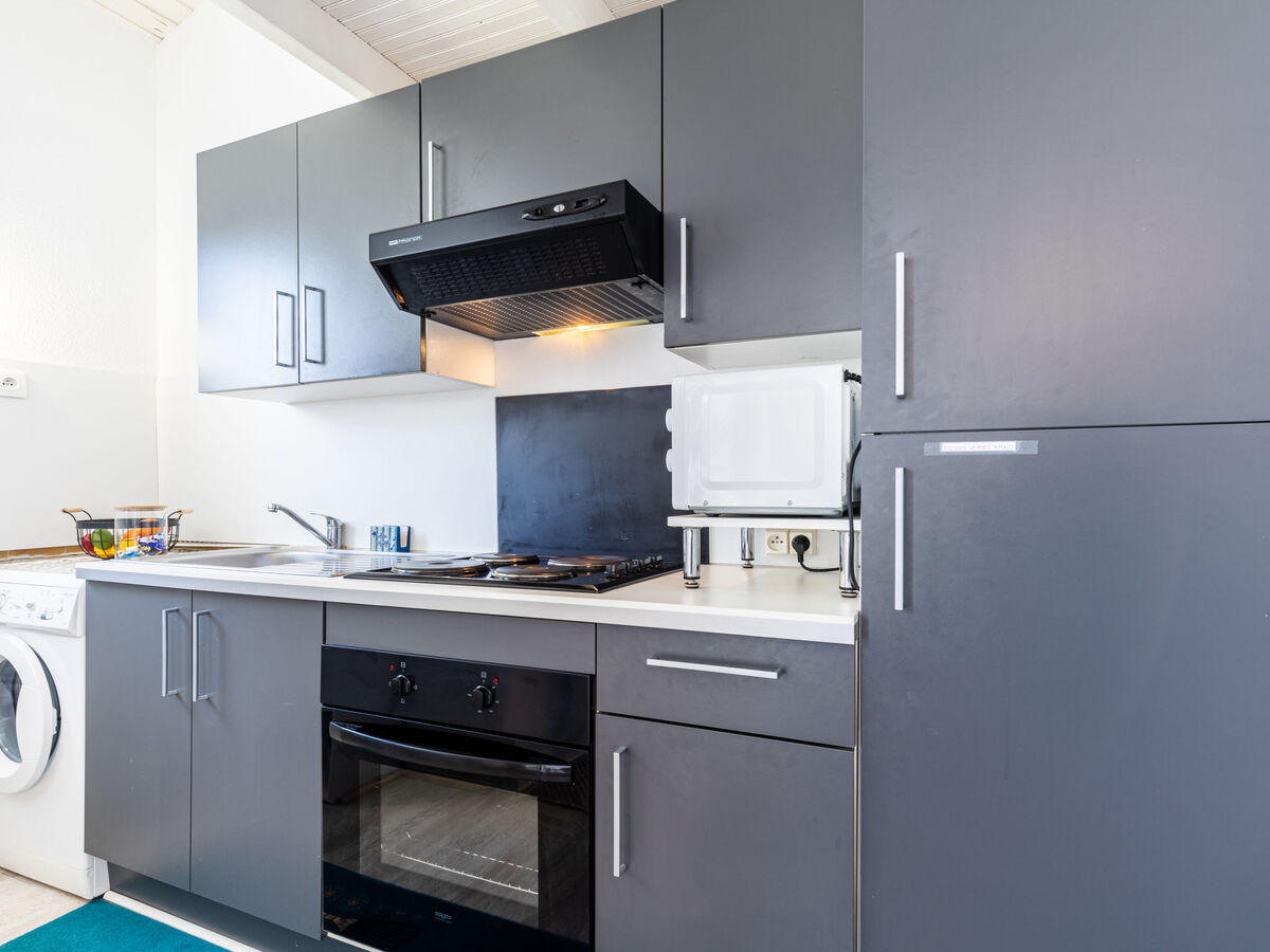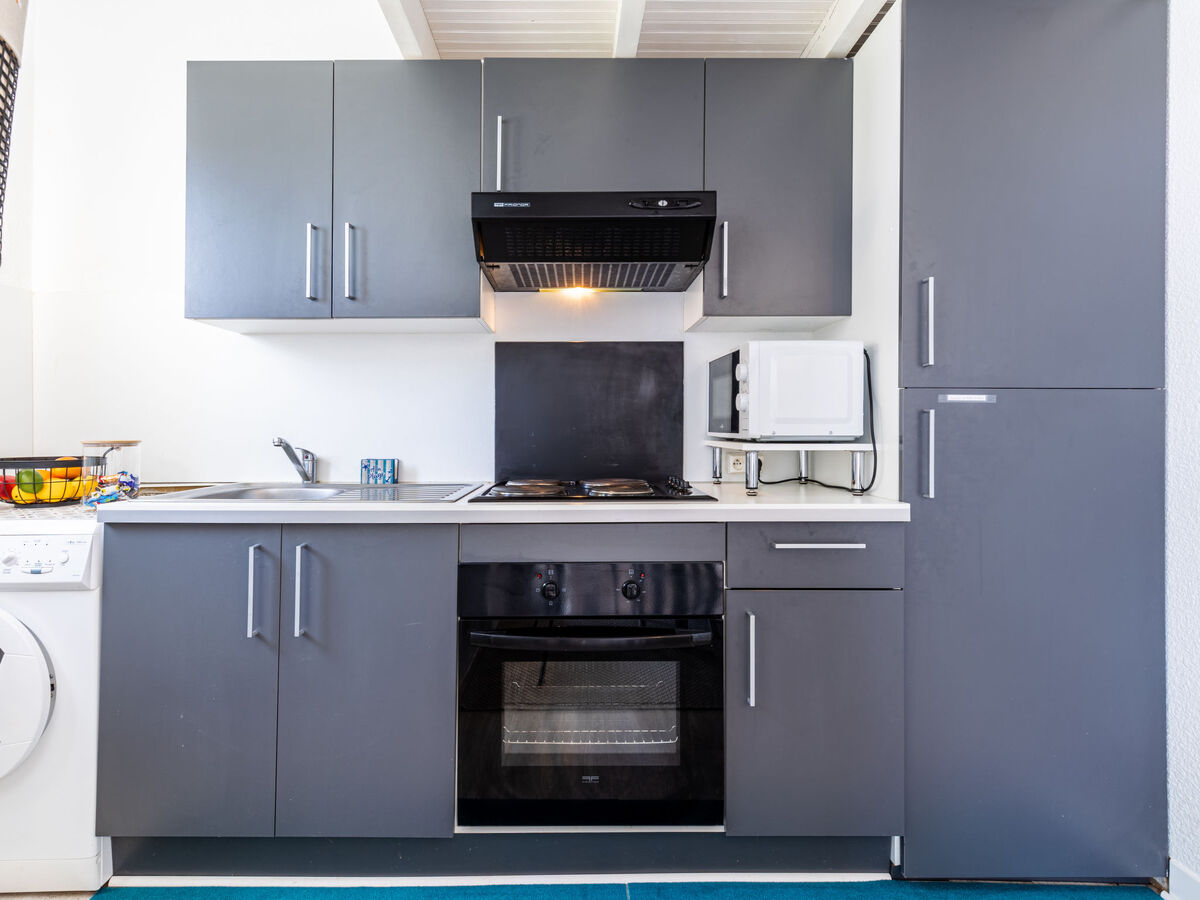 Cuisine ouverte (4 plaques de cuisson, four, lave-vaisselle, bouilloire électrique, micro-ondes, cafetière électrique, Capsules pour machine à café (NESPRESSO) (NON INCLUSES)).