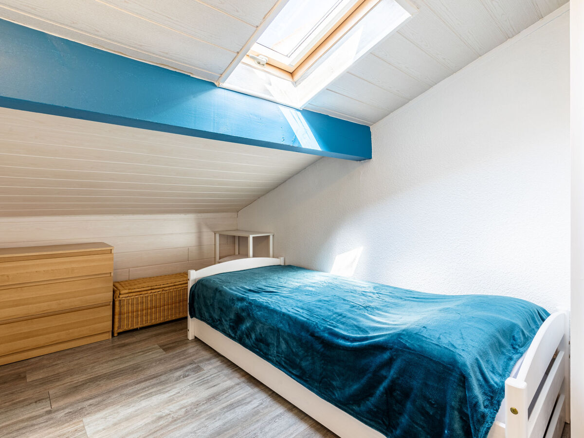 1 petite chambre, mansardée avec fenêtre sous le toit avec 1 lit (90 cm, longueur 190 cm).