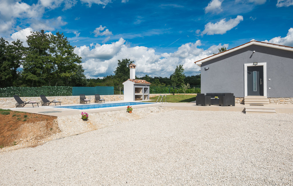Cette belle maison confortable vous accueille dans un cadre magnifique entouré par la nature de l'Istrie. Les pièces agréables sont aménagées dans le style moderne d'une maison de campagne. Vous pourrez vous y installer confortablement après vos aventures dans la nature environnante, regarder un film ensemble, cuisiner de bons petits plats et savourer vos repas en toute tranquillité.