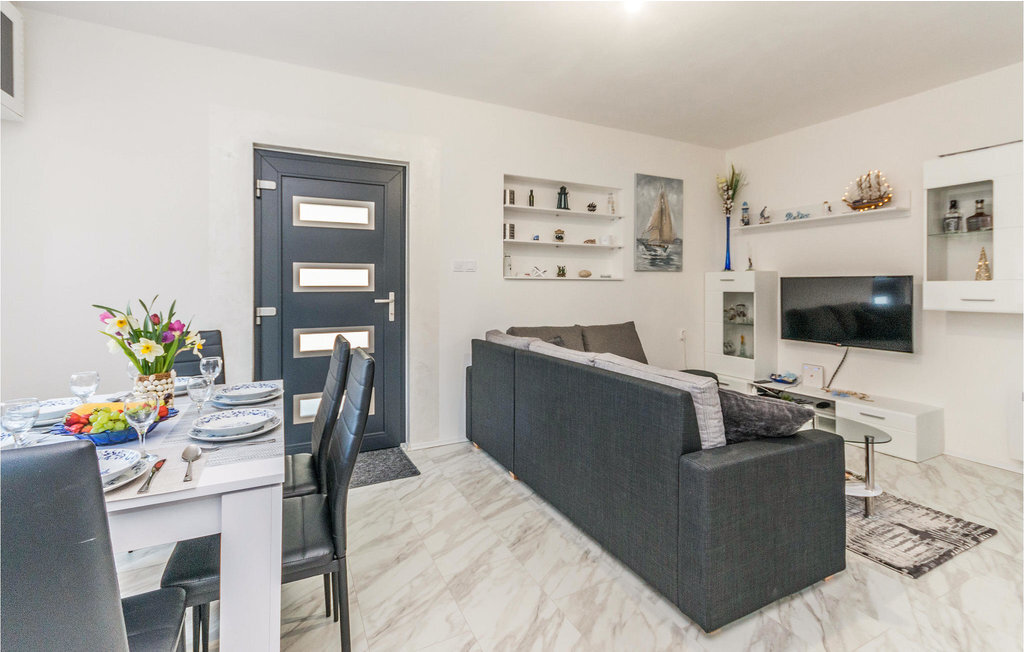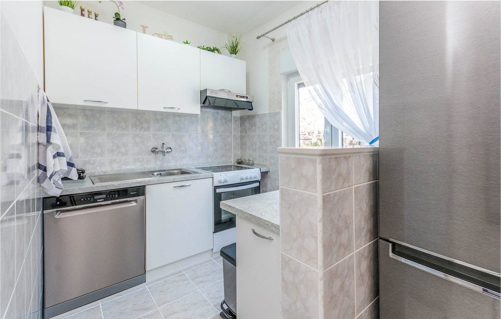 Grâce à la courte distance jusqu'à la mer, vous pouvez à tout moment vous rafraîchir à votre guise sur la plage de galets. Vous trouverez des bars, des restaurants et des marchés à proximité. Un court trajet en voiture vous mènera aux parcs nationaux, où vous pourrez découvrir la nature spectaculaire de la Dalmatie.