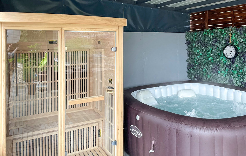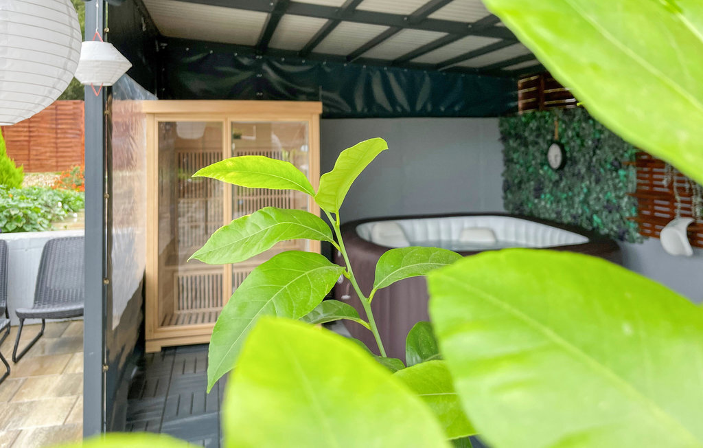 Bien-être à l'extérieur : Location de vacances disposant de chaises-longues et d'un ou plusieurs équipements tels que piscine extérieure, jacuzzi extérieur, lit à baldaquin de jardin etc...