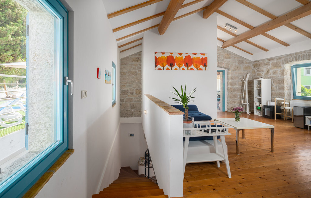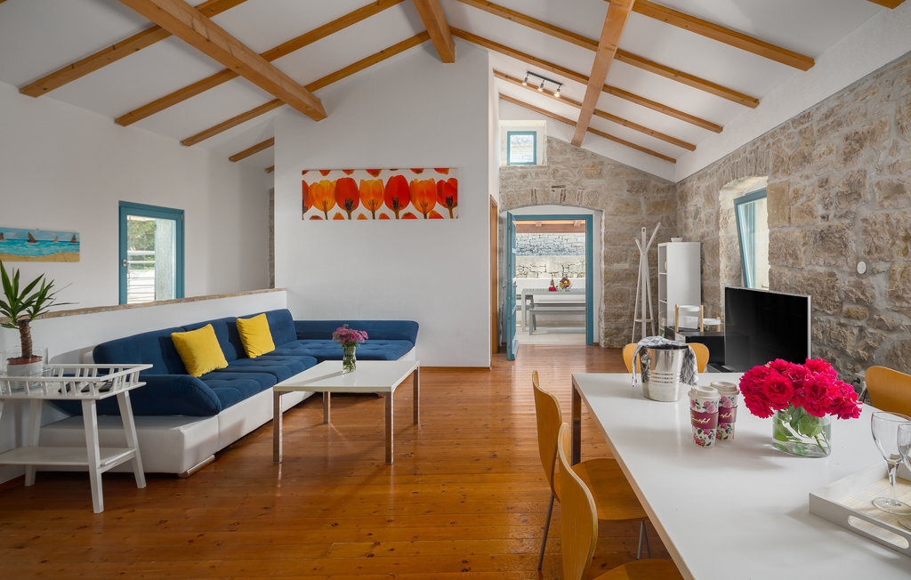 Cette maison confortable vous accueille dans un cadre de rêve, entourée de l'immensité du paysage. Dans les pièces claires et agréables, la maçonnerie en partie visible et les sols en bois soignés côtoient des meubles modernes, un mélange idéal pour se sentir tout de suite à l'aise. Ici, vous pouvez vraiment profiter de vos journées ensemble. Le soir, après une magnifique journée à la piscine ou une belle excursion dans les environs, installez-vous confortablement dans le salon et laissez les expériences de la journée vous envahir.