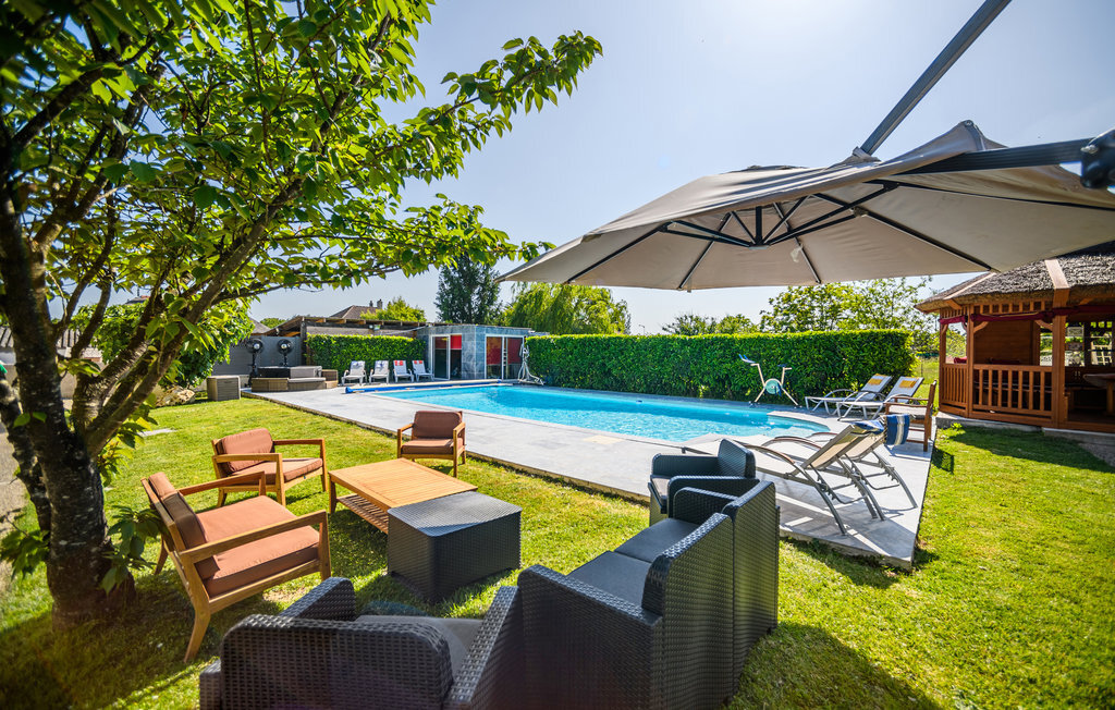 Bien-être à l'extérieur : Location de vacances disposant de chaises-longues et d'un ou plusieurs équipements tels que piscine extérieure, jacuzzi extérieur, lit à baldaquin de jardin etc...
