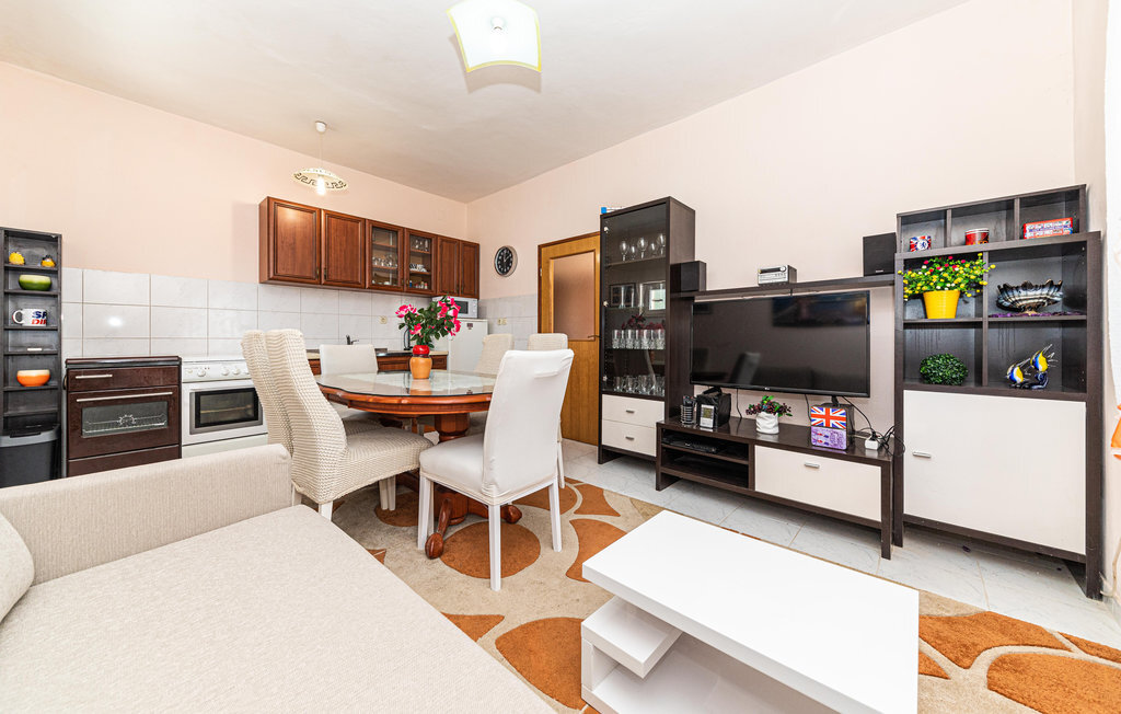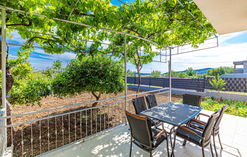 La plage de galets est accessible en une courte promenade, vous pouvez vous réjouir de profiter du soleil et de prendre un bain rafraîchissant dans l'eau claire de la mer. Faites une excursion à Trogir, traversez le pont vers la vieille ville et découvrez les monuments qui témoignent du riche passé de cette ville impressionnante, dont le palais Cipiko, l'église Sveti Petar et les bâtiments de la place Jean-Paul II.