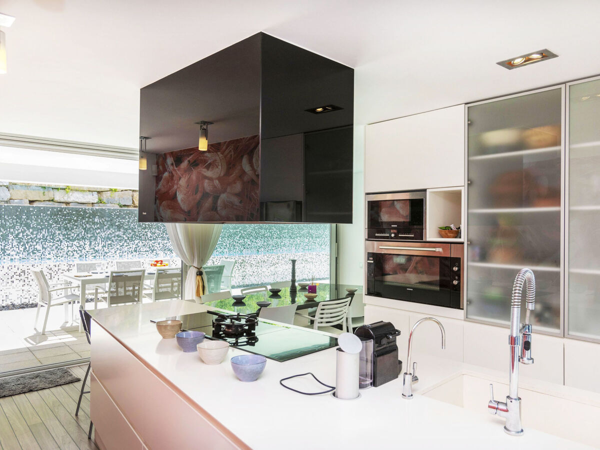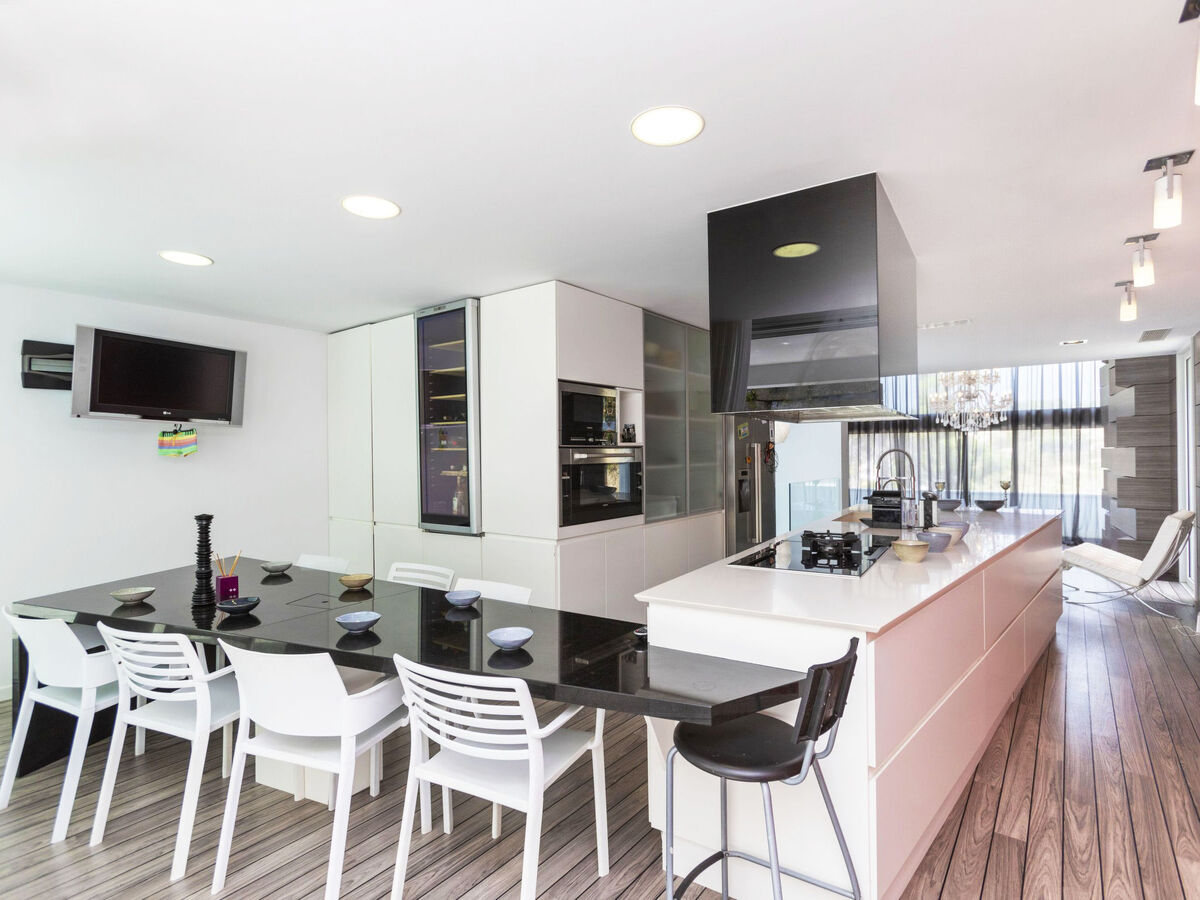 Grande cuisine ouverte (lave-vaisselle, 2 plaques vitrocéramiques, grille-pain, bouilloire électrique, micro-ondes, congélateur, ilot de cuisine).