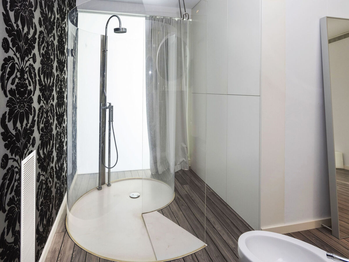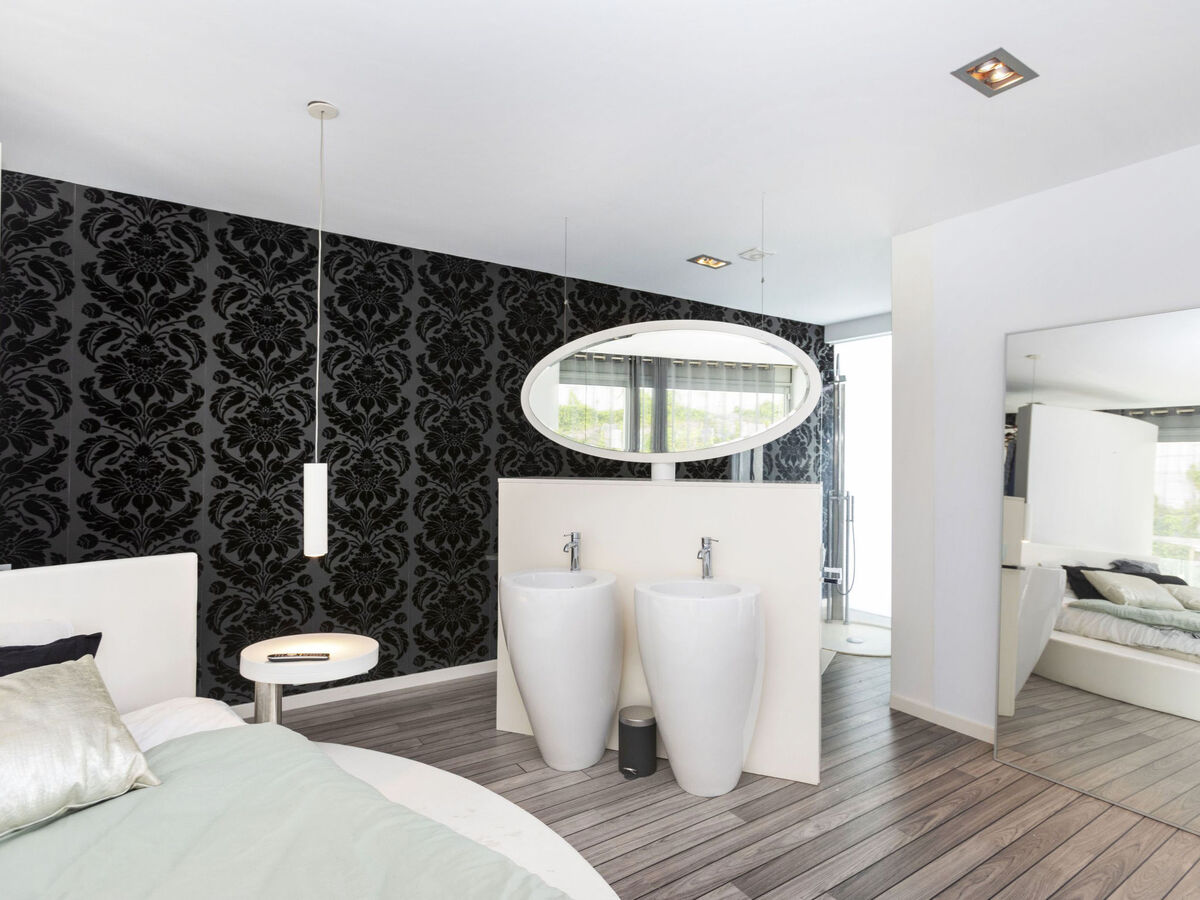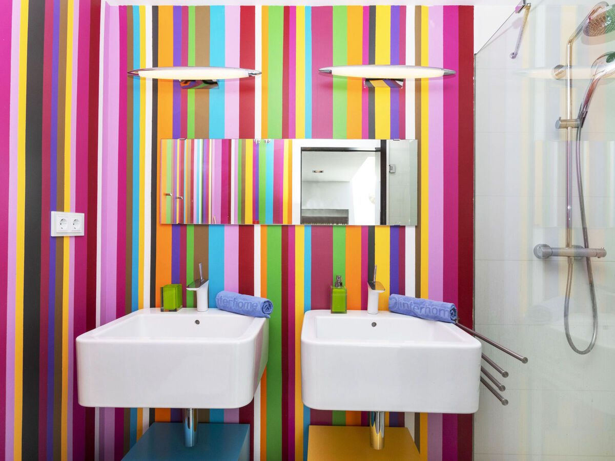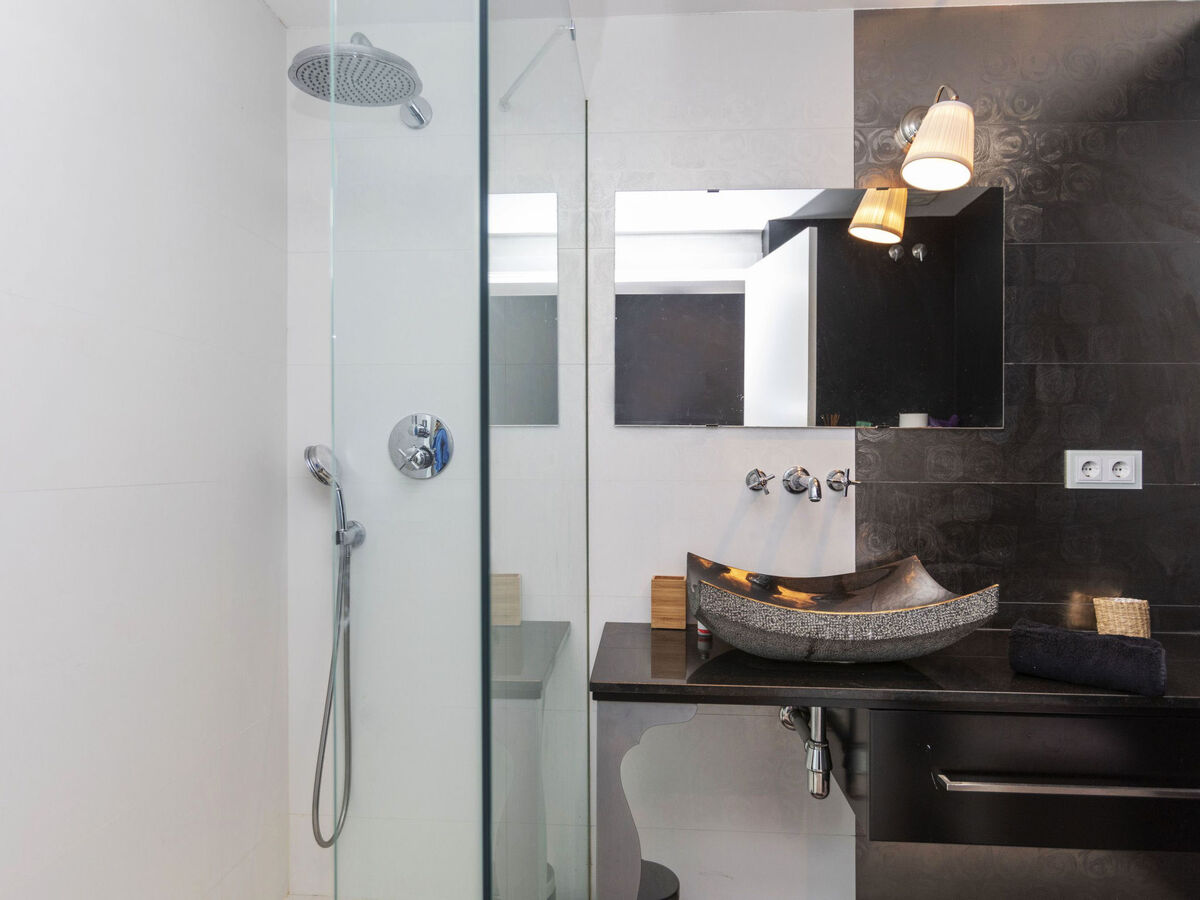 2ème étage: 1 chambre avec 1 grand-lit (200 cm, longueur 200 cm), douche/WC et double vasque.