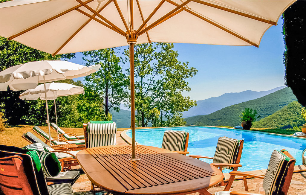 Bien-être à l'extérieur : Location de vacances disposant de chaises-longues et d'un ou plusieurs équipements tels que piscine extérieure, jacuzzi extérieur, lit à baldaquin de jardin etc...