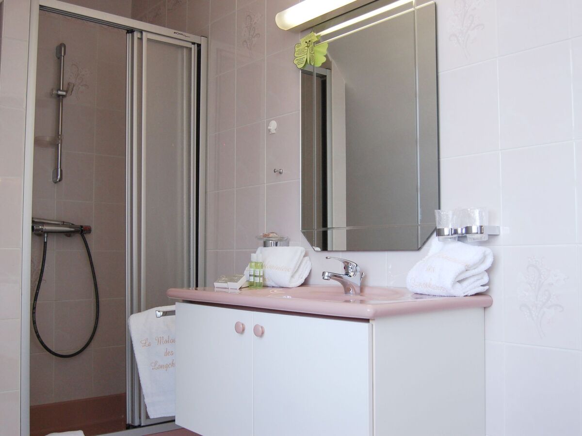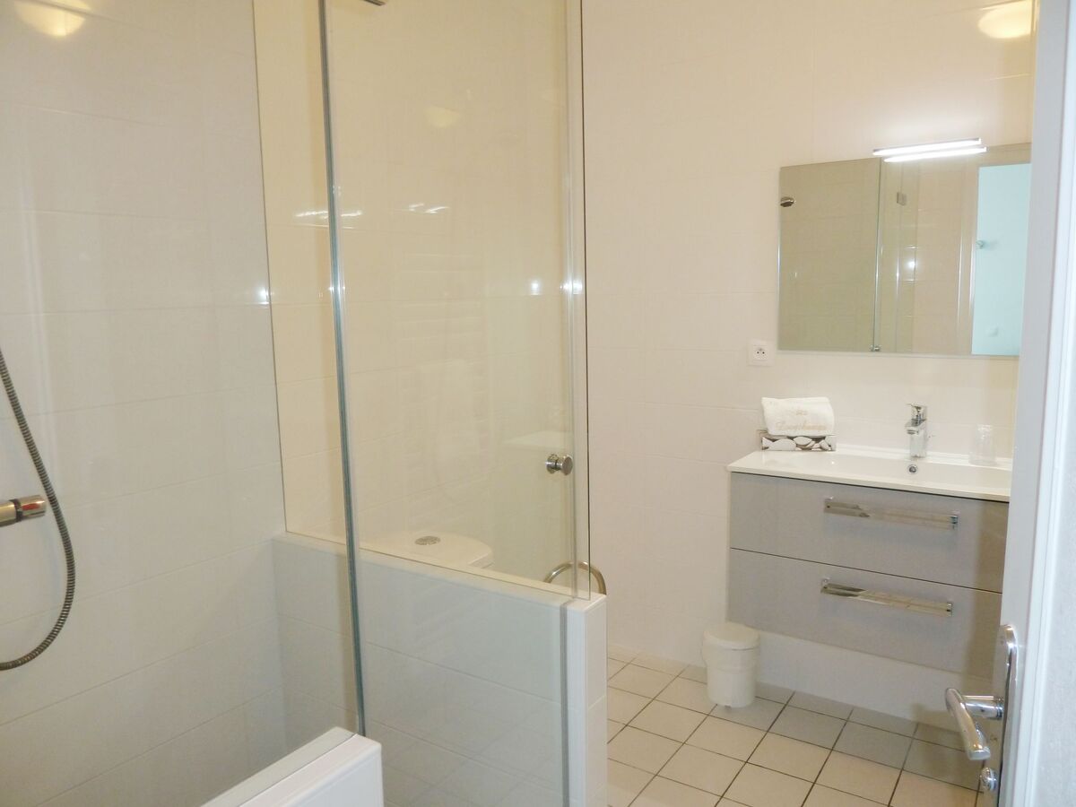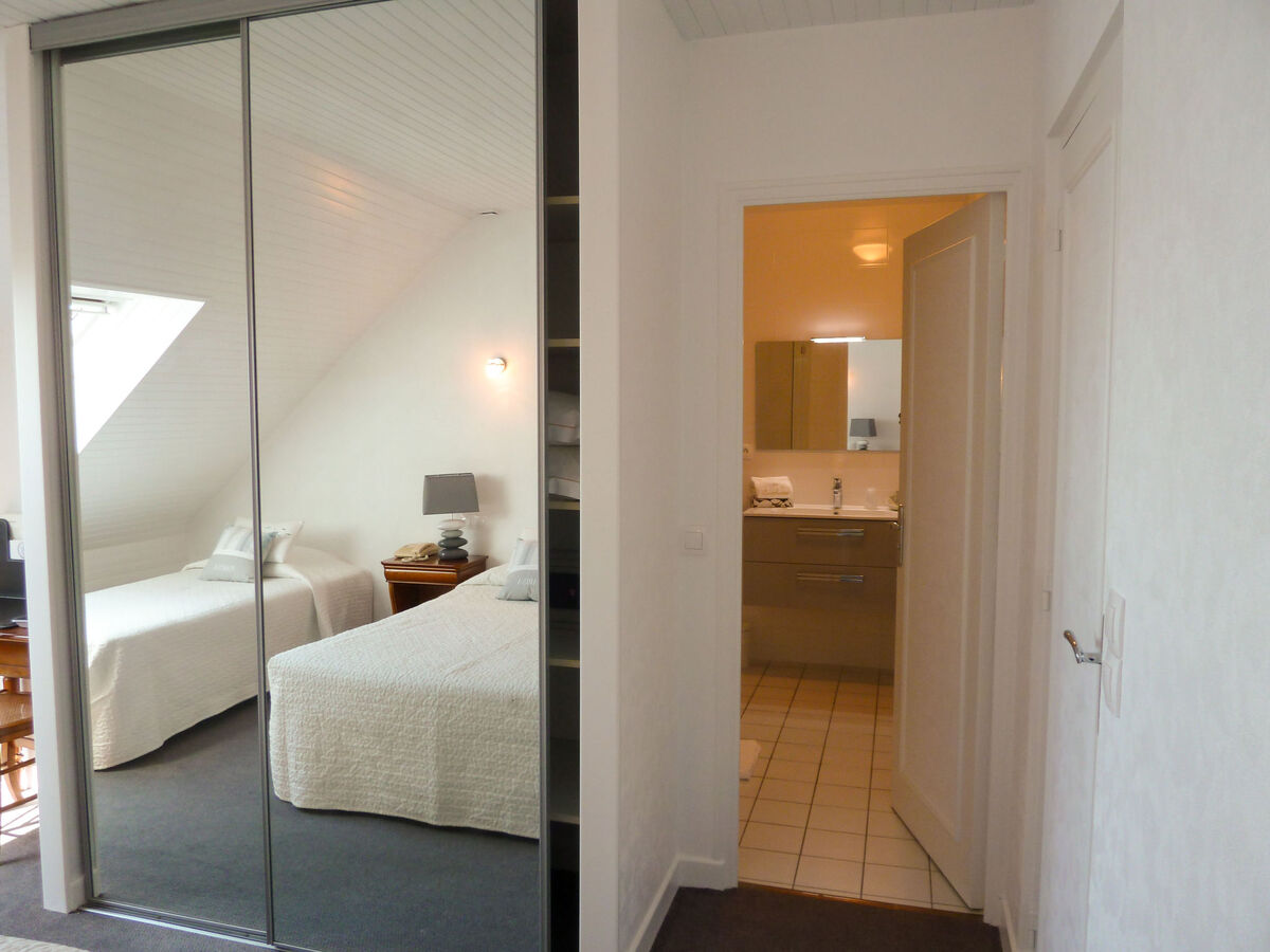 1 chambre avec 1 grand-lit (1 x 160 cm, longueur 200 cm), douche/WC.