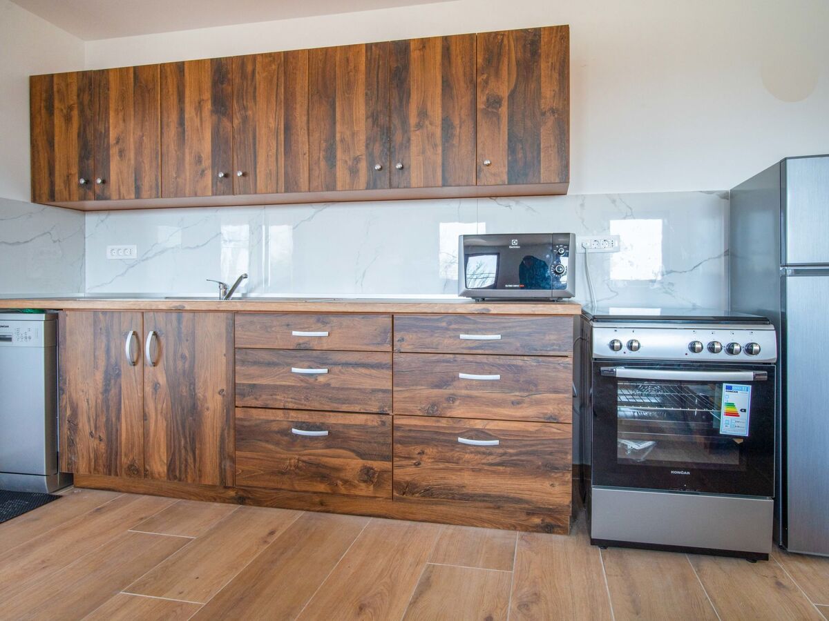 Cuisine ouverte (2 plaques de cuisson, four, lave-vaisselle, 2 feux, bouilloire électrique, micro-ondes, congélateur).