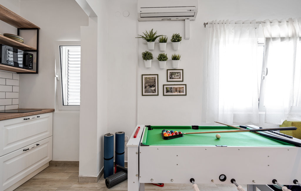 Location de vacances avec activités : Cette location de vacances comprend un ou plusieurs équipements de loisir (ping-pong, billard, baby-foot...)