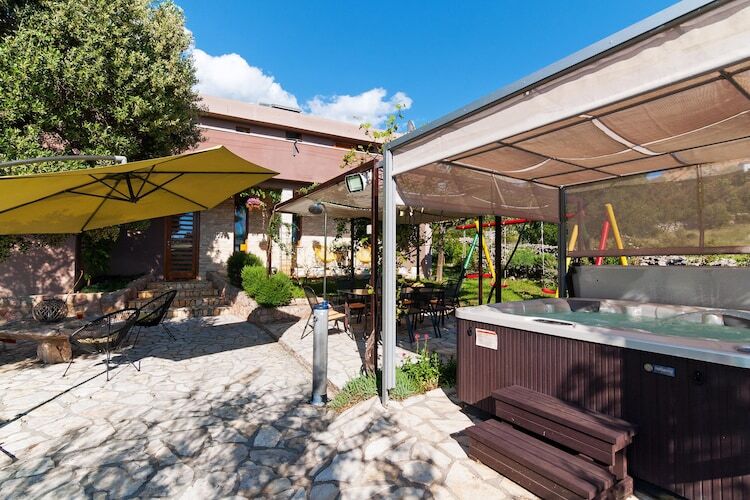 Activités à proximité : La région est parfaite pour les personnes qui aiment passer leurs vacances activement avec la randonnée, le VTT et les sports nautiques. La rivière Zrmanja est idéale pour le canoë-kayak. Visitez également le parc national de Paklenica, situé à 11 kilomètres de votre hébergement et à environ 50 km au nord de Zadar entre la côte et les plus hauts sommets du Velebit. Les falaises de 400 mètres de haut, les grottes, les grottes et les formations rocheuses bizarres font de ce paysage une expérience naturelle exceptionnelle. Cependant, vous ne trouverez pas seulement ici un paysage karstique aride, car les pentes rocheuses escarpées sont couvertes d'une forêt de pins dense et inhabituelle en raison du climat. Dans le parc, il existe un réseau de plus de 150 km de sentiers de randonnée, qui permettent à la fois de courtes randonnées et des randonnées de plusieurs jours. La randonnée la plus populaire dure environ deux heures et mène de l'entrée du parc à travers l'impressionnante gorge de Velika Paklenica. Sur le chemin, vous pouvez voir divers moulins à eau, qui ne sont plus utilisés mais qui sont bien conservés. Et dans la cabane forestière de Lugarnica, vous pouvez vous fortifier avec une collation copieuse. La belle ville de Zadar est à seulement 30 km d'ici, où vous pourrez visiter de nombreux sites historiques et aussi un centre commercial.